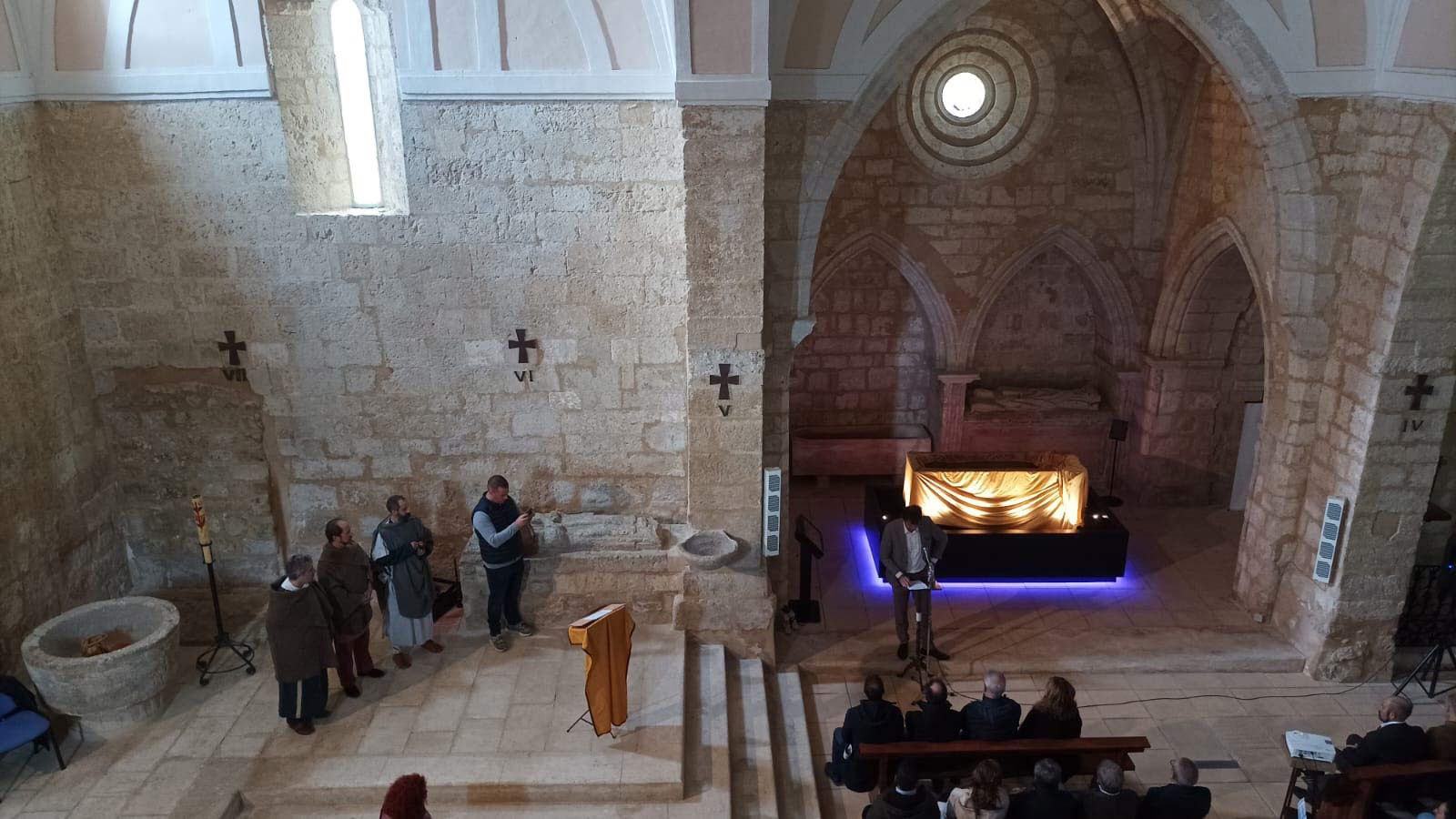 La réplica del Sarcófago de La Orestíada ya puede visitarse en la parroquia de Nuestra Señora de La Asunción de Husillos (templo más conocido como La Abadía). La inauguración ayer de este facsímil es el inicio de un proyecto que trata de poner en valor el legado romano no solo en la localidad terracampina sino en el conjunto de la provincia. Y, como tal, terminó siendo todo un fasto a la altura de las circunstancias, con ambientación especial y un ágape digno de los dioses.