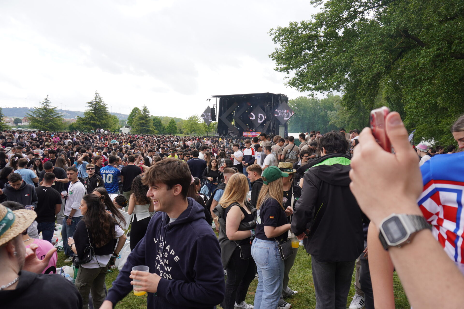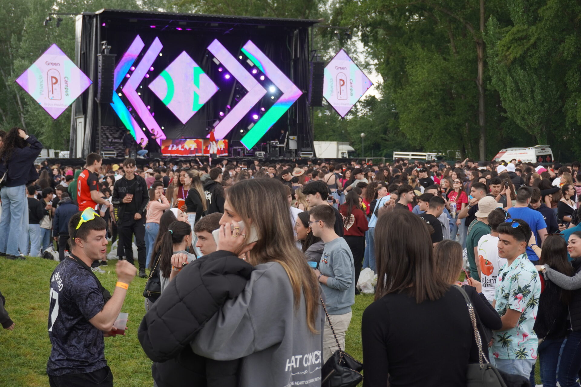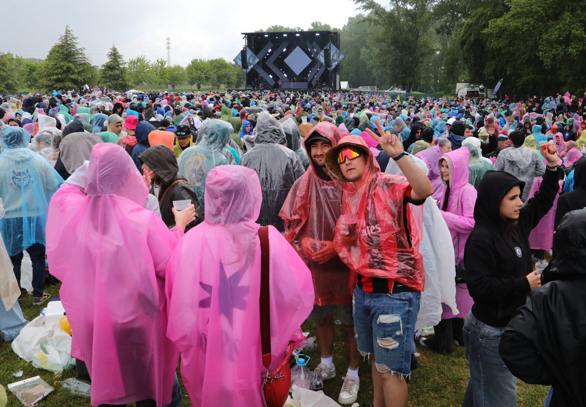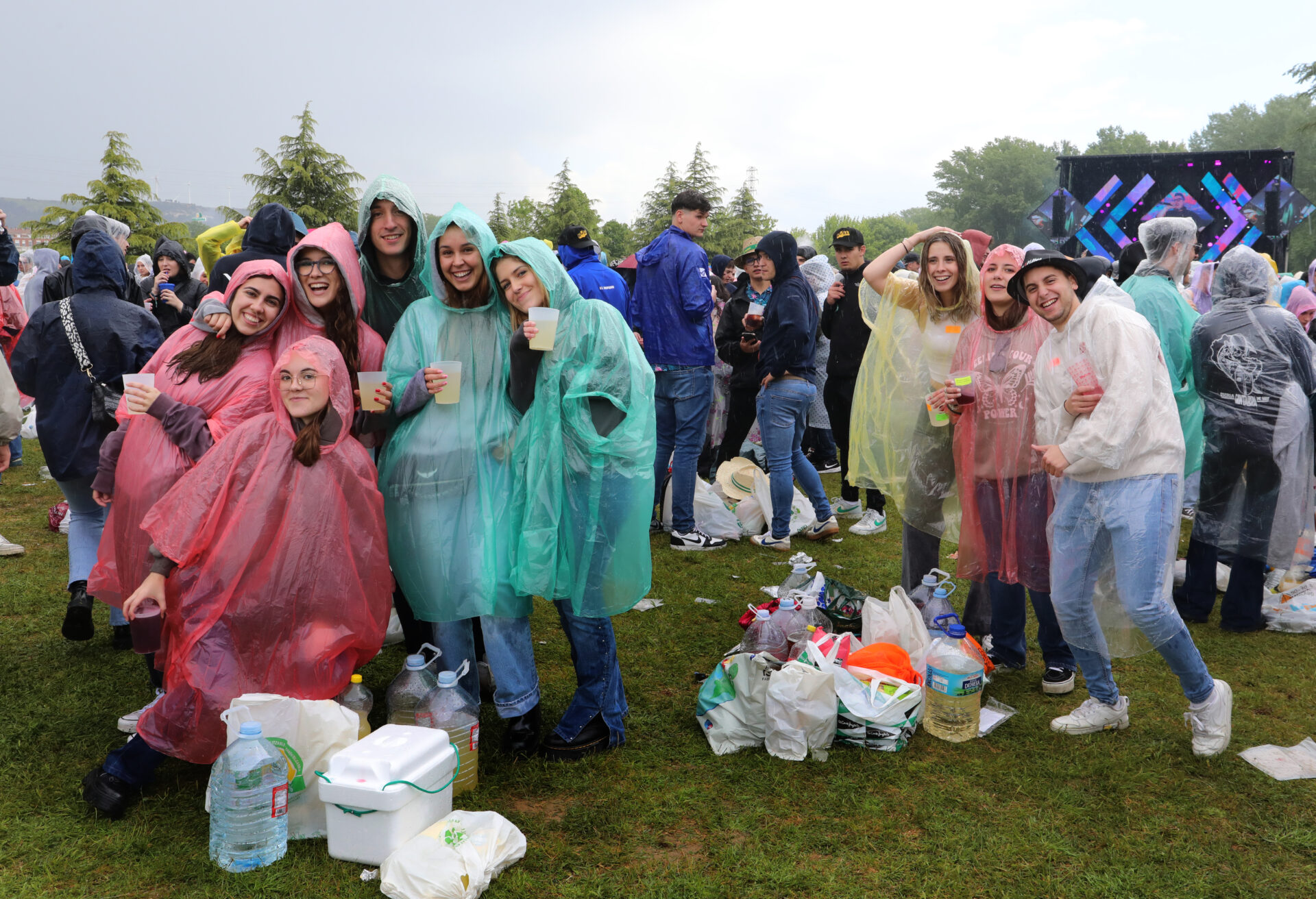 Sea como fuera, la lluvia comenzó a caer con fuerza. Pero no restó aplomo a los miles de personas que ya estaban en el parque palentino. Abrieron la mochila, la riñonera o la bolsa con los hielos, sacaron el poncho. Muchos, la mayoría, se parapetaron bajo el plástico, creado una especie de fiesta Holi, pero sin polvos de colores.