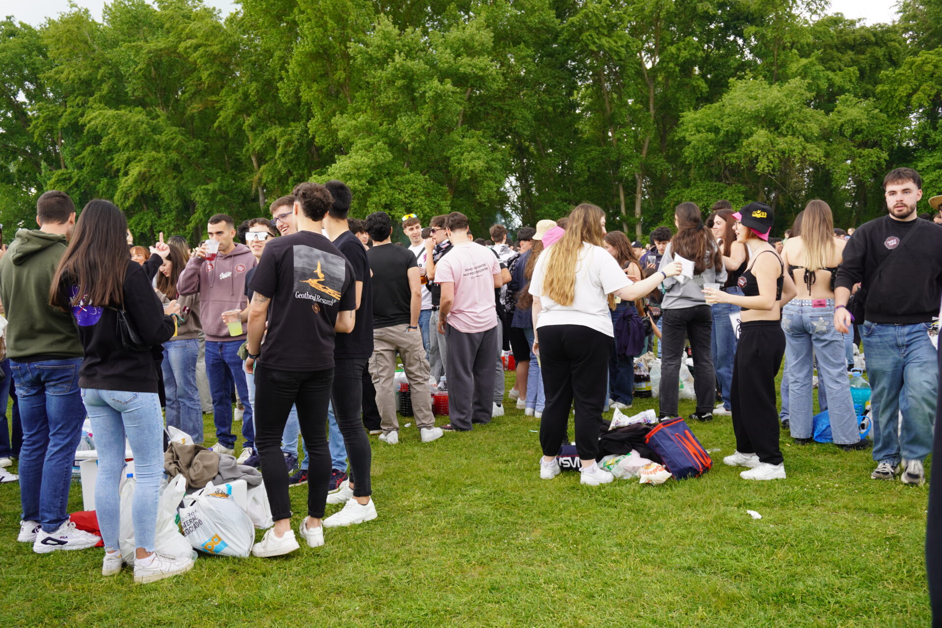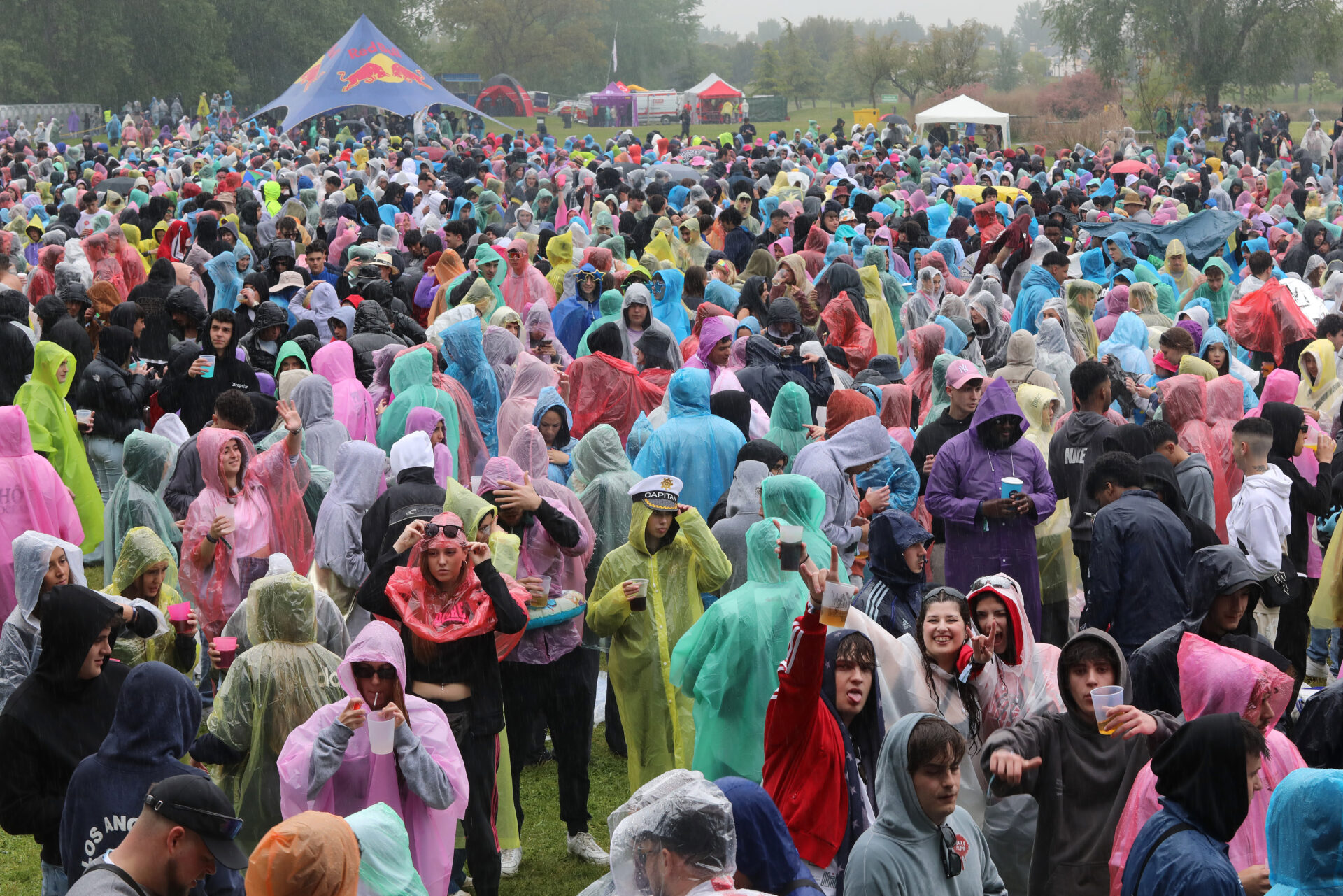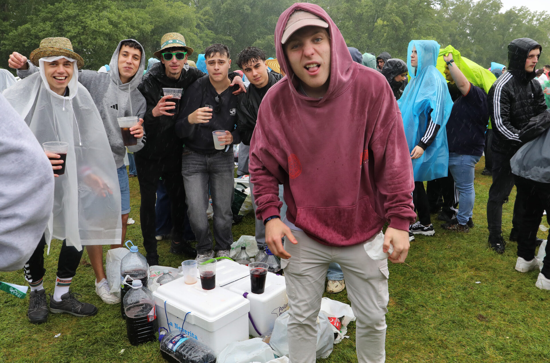 La lluvia no respetó la fiesta universitaria con un aguacero pasado el mediodía, pero los participantes iban preparados… o no