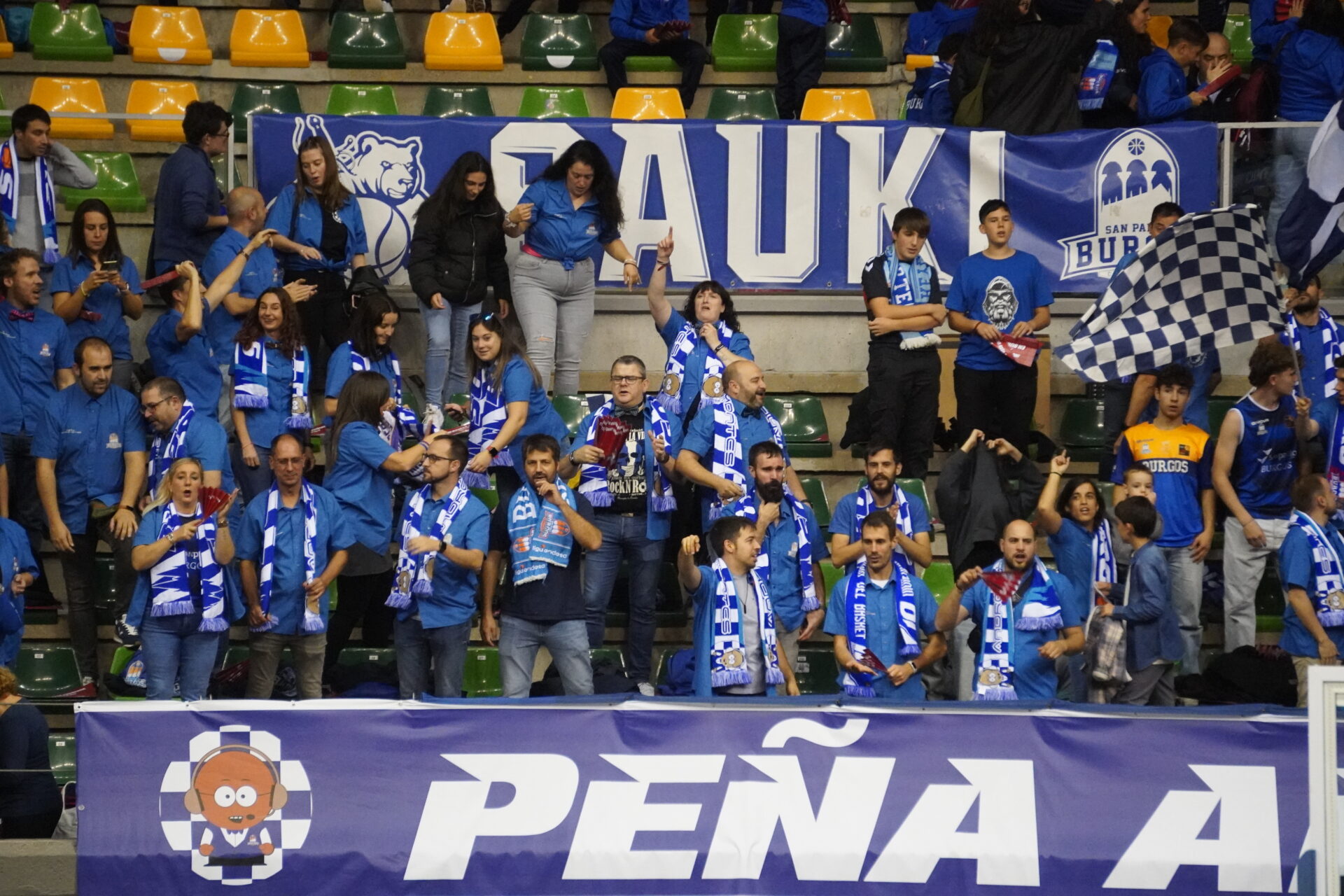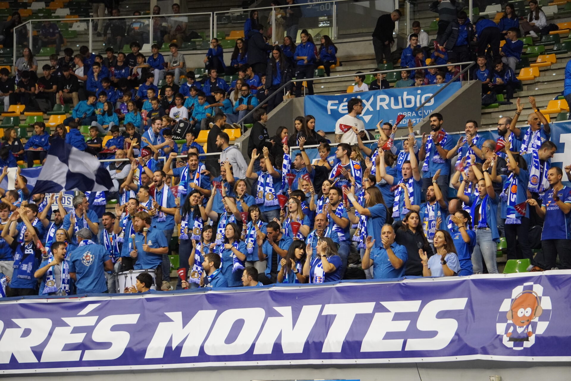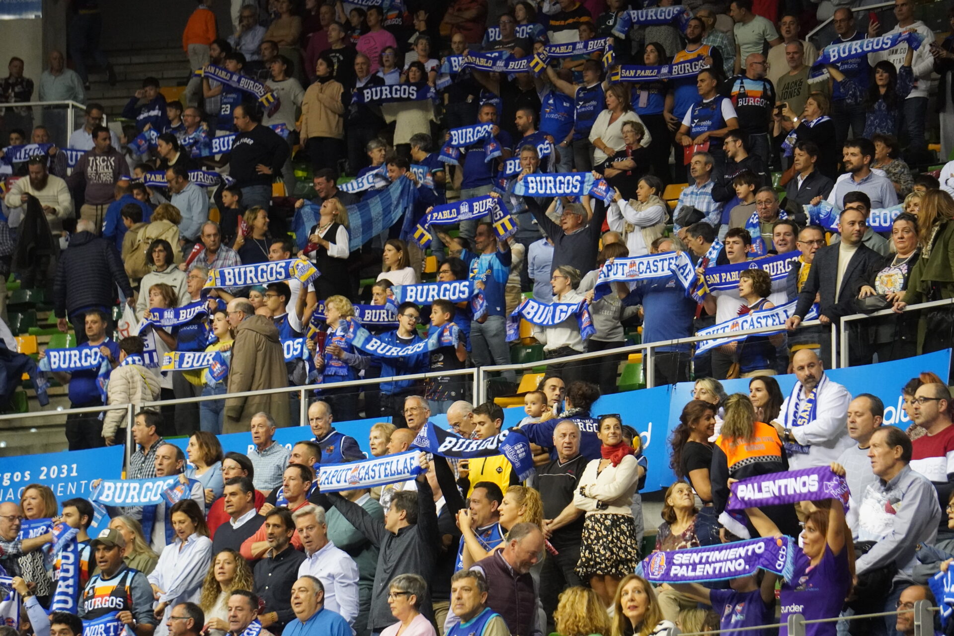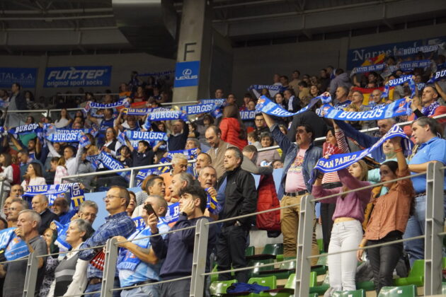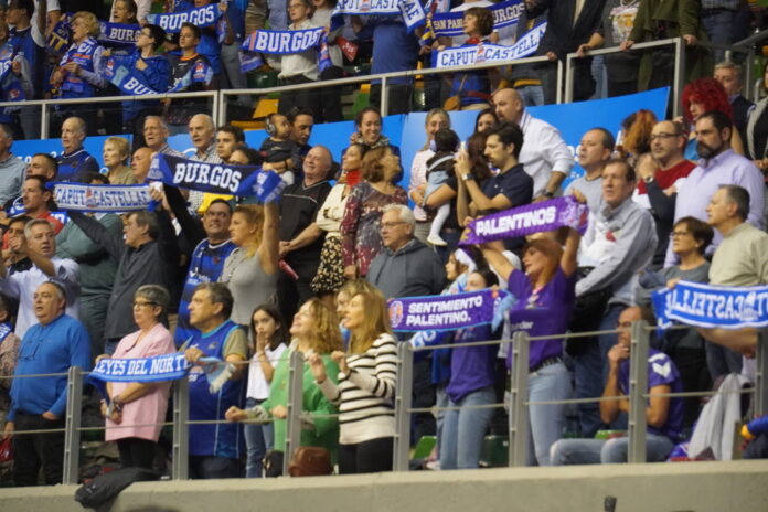 Y pese a la derrota y la tensión del encuentro, hermandad absoluta entre los aficionados de uno y otro color. Primero con el largo himno a Burgos (lo cantan entero) con bufandas al aire. Las palentinas asomaban entre la marea burgalesa.