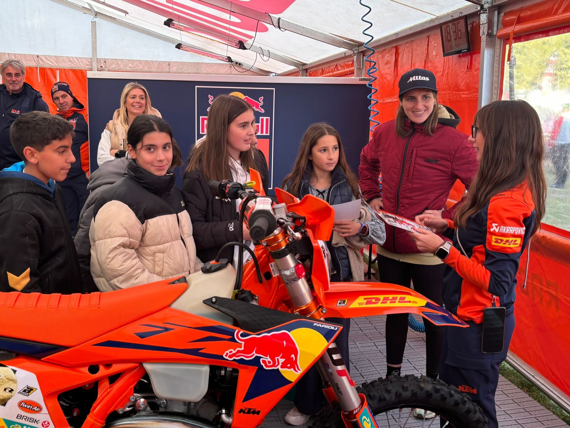 Precisamente, la piloto Sandra Gómez ofreció por la tarde una visita a un grupo de escolares al paddock para conocer los entresijos de las horas previas a las pruebas, así como la función que desempeñan cada miembro del equipo y, no solo la del piloto que es la figura más visible, para preparar la competición.