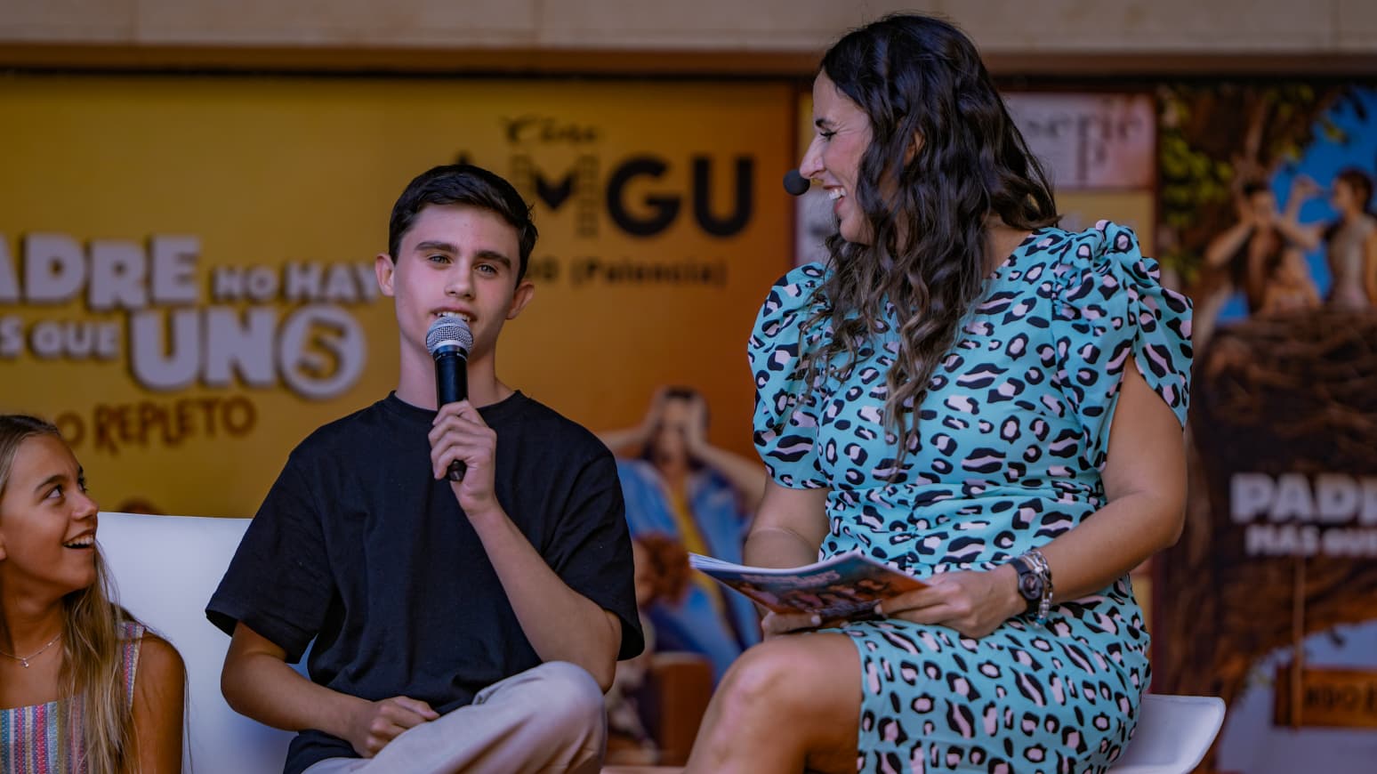El elenco infantil de las películas protagonizó un encuentro en el Cine AMGu este sábado, en el que conversaron con el público y disfrutaron de la proyección de la última entrega, Padre no hay más que uno 5. Martina D’Antiochia (Sara García Loyola), Calma Segura (Carlota), Luna Fulgencio (Rocío), Carlos González Morollón (Dani), Sirena Segura (Paulita) y Blanca Ramírez (que se incorpora a la quinta entrega como Cris), los hijos que han crecido junto a la saga, participaron en una velada organizada por AMGu, conducida por la presentadora palentina Erica González y bajo la realización técnica de OceanGrain Audiovisual, y con la música en directo de The White Oaks, con Nacho Blanco y Laura Robles.