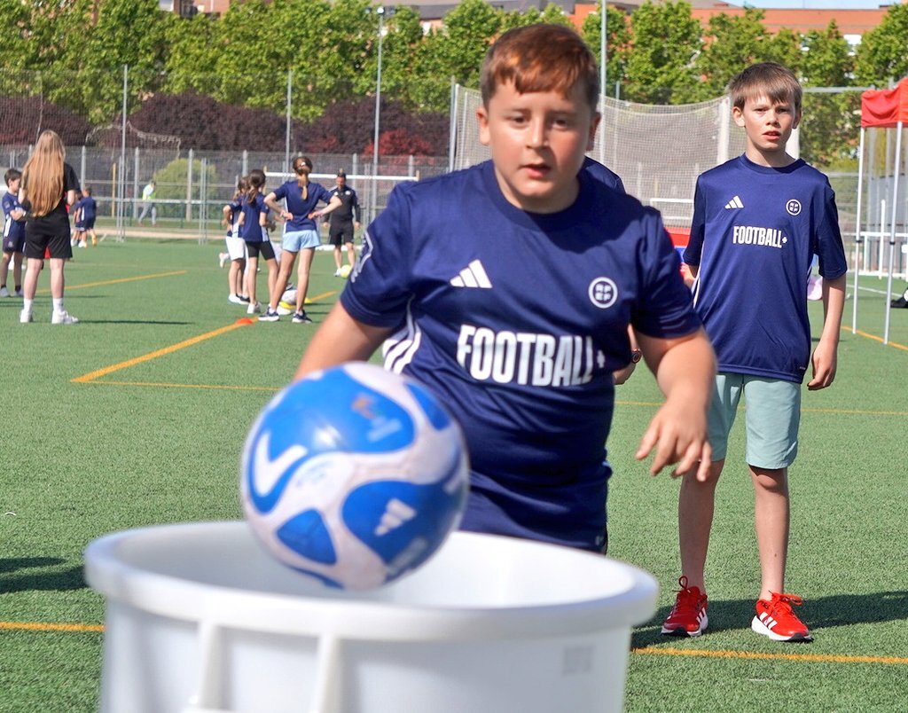 Los campos Sergio Asenjo de Palencia acogieron, este lunes 17 de junio, del desarrollo del proyecto interescolar FOOTBALL +, que tiene por objeto educar a través del fútbol. Los centros educativos palentinos CEIP Sofía Tartilán, Colegio Santa Clara de Asís, Colegio Filipense Blanca de Castilla y CEIP Clara Campoamor participaron en esta actividad deportiva y lúdica, desde las 9 hasta las 14 horas de la jornada de ayer, con más de un centenar de escolares.
