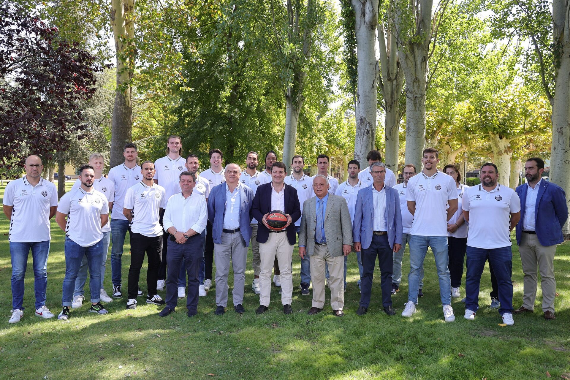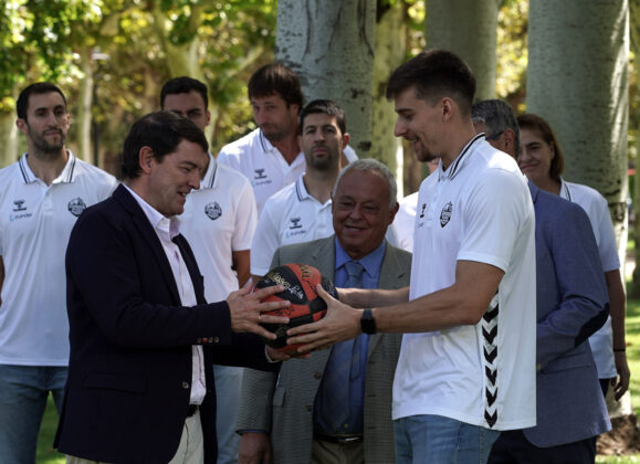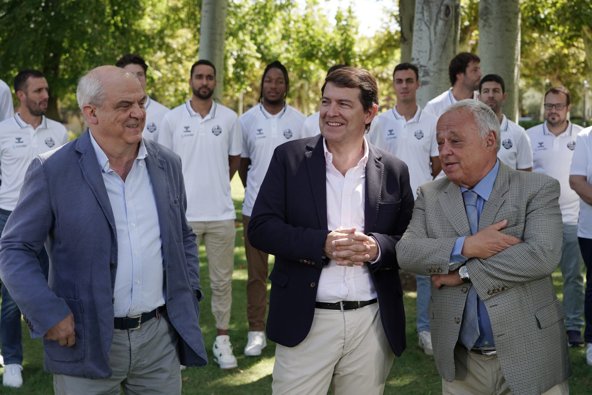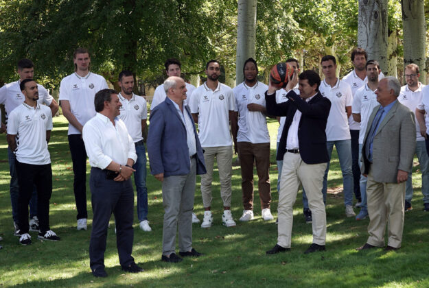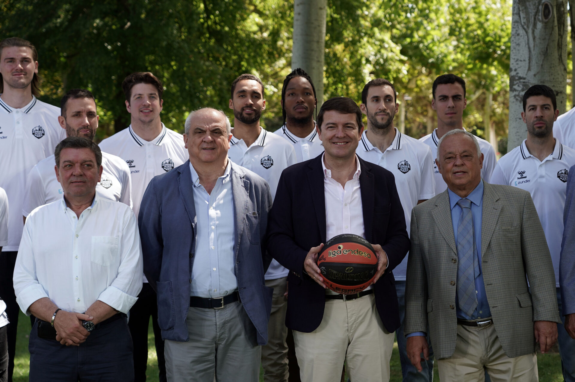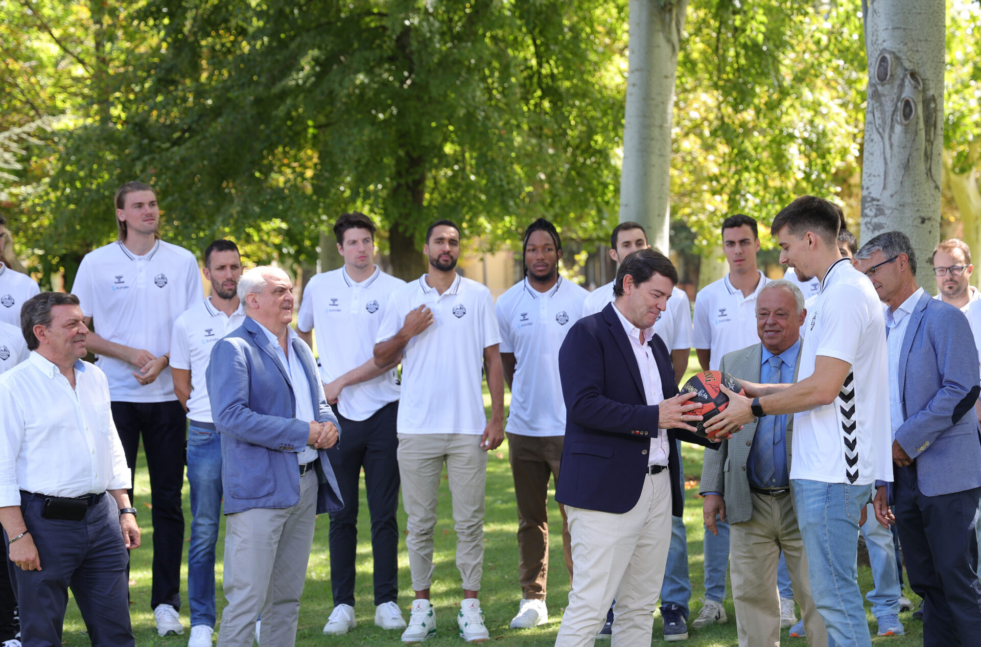 El presidente de la Junta recibe, por segunda vez este año, al conjunto palentino, en este caso ante su estreno en la máxima categoría del baloncesto español