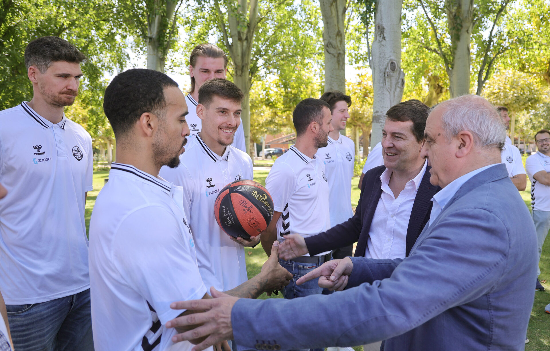 El Zunder Palencia, por su parte, entregaba al presidente de la Comunidad el balón con el que afrontará la nueva competición firmado por todos sus integrantes. Era Chumi Ortega, el capitán del equipo, quien le obsequiaba y expresaba el orgullo que será para todo el club representar a Palencia y a Castilla y León en la Liga Endesa.