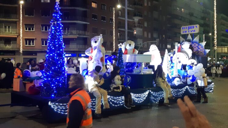 Porque la carroza del anciano enfundado en su traje rojo era la última, pero antes, hasta seis carrozas, grandes o pequeñas, habían hecho ya el recorrido. Desde el carrito con el globo de Gaza que encabezaba el desfile solo por detrás de la escolta policial a tan importante procesión, hasta un paso en el que viajaban personajes de cuentos como Maléfica, Lumiere y Ding Dong, y algunas princesas de Disney. Desde la ya tradicional orquesta de osos polares a la gran carroza con el nombre del patrocinador de la CabalGaza sobre la que viajaba la princesa Elsa de Frozen, acompañada de una vaca de Gaza y un muñeco de nieve que no tenía intención de parecerse a Olaf. Y para completar los prolegómenos, antes de la llegada de la carroza más esperada, un gran tren luminoso con más personajes de Disney y árbol de Navidad rodante.