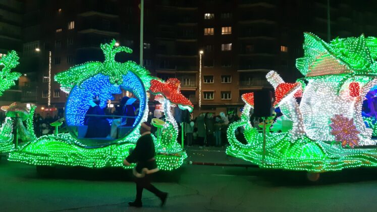 Eso sobre ruedas, porque acompañando a Papá Noel por las calles de Palencia, centenares de extras. Algunos pertenecientes a los clubes de gimnasia de Palencia recorrieron la ciudad realizando acrobacias. Otros eran grupos de ‘duendes’ bailando; además de renos, magos, hadas y otros personajes mágicos que repartían caramelos, piruletas y globos para deleite de los más pequeños.