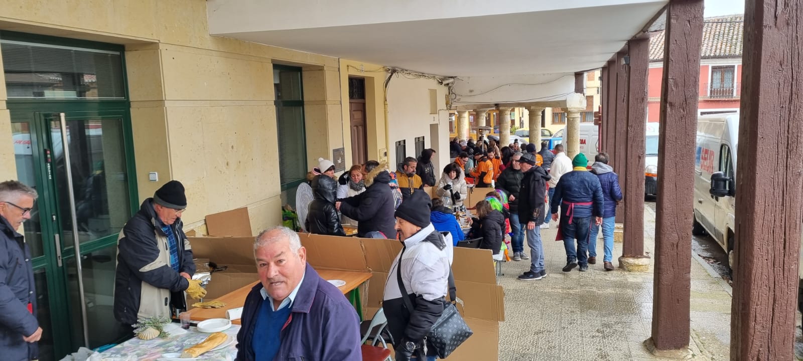 Y por si fuera poco el alimento ya listo, en torno a las 15 horas comenzó el reparto de otros productos característicos de la matanza: jijas y morcilla. En este caso, previo pago de tres euros por cada ración de estos manjares del gocho.