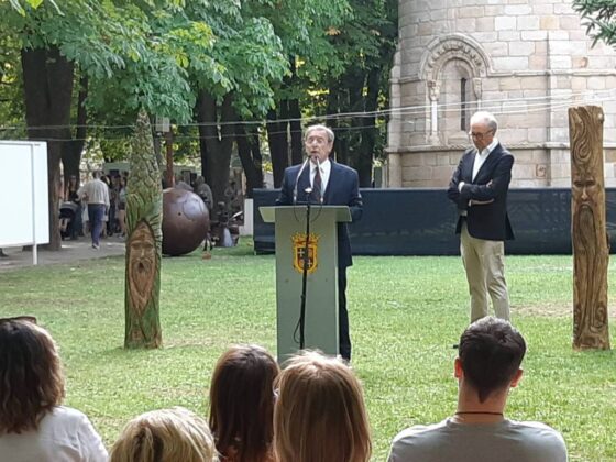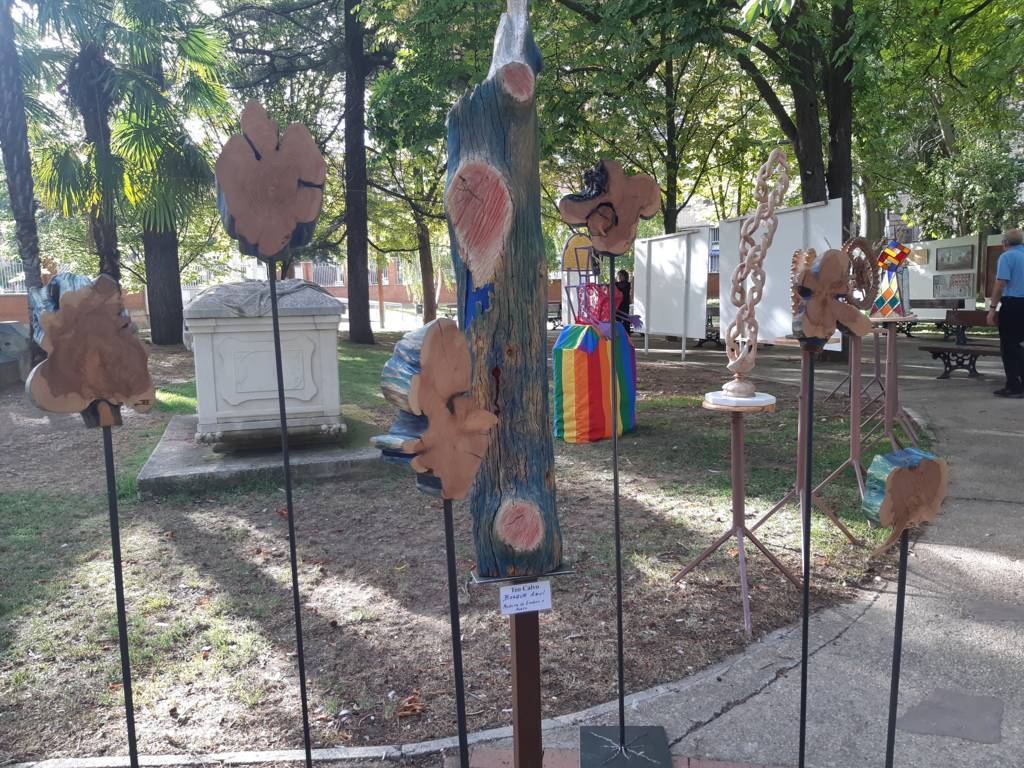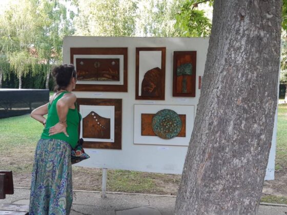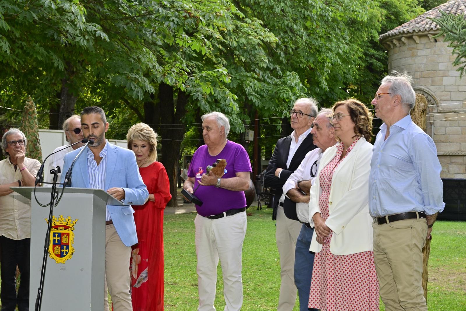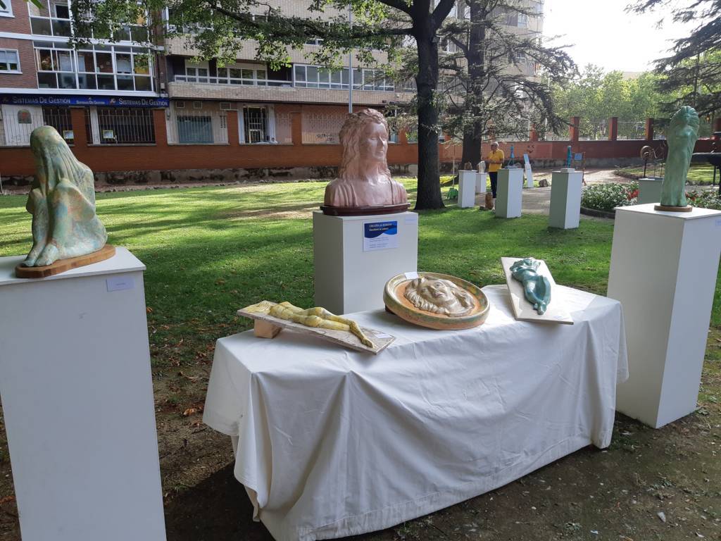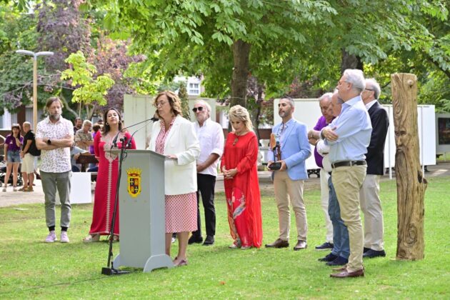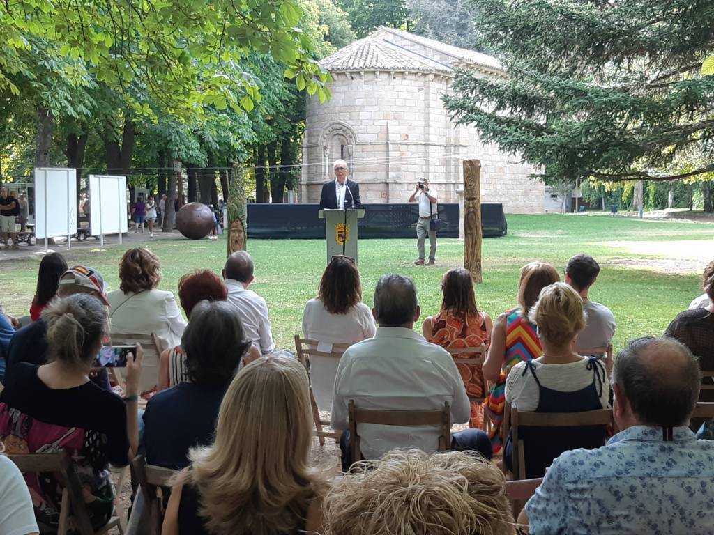 El arte al aire libre. Bajo el manto de los árboles hoy mecidos con moderada intensidad. Otras jornadas como sombra ante el calor que se espera vuelva a lo largo de la semana. Con sonido del follaje como una nueva dimensión para saborear el arte en un espacio que comenzó a ganar relevancia para la cultura en la ciudad hace 40 años con Expo Aire, de la mano del Grupo Muriel, como ha recordado esta tarde la alcaldesa de Palencia, Miriam Andrés en la vuelta de Expo Aire a este espacio.