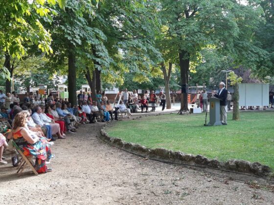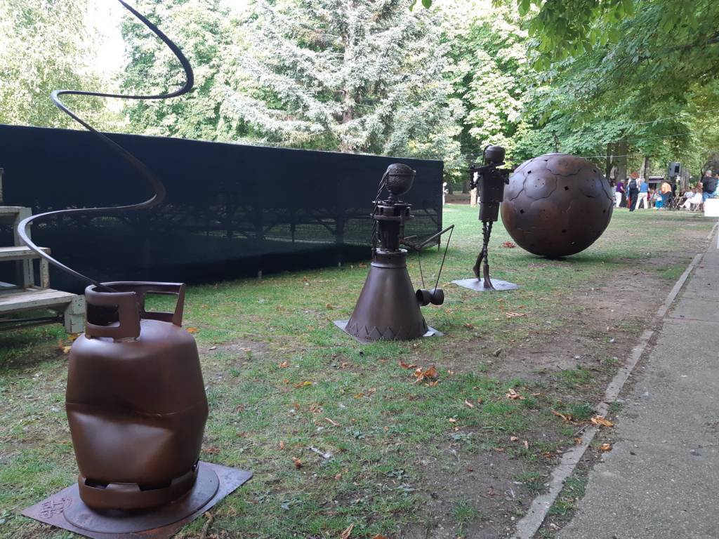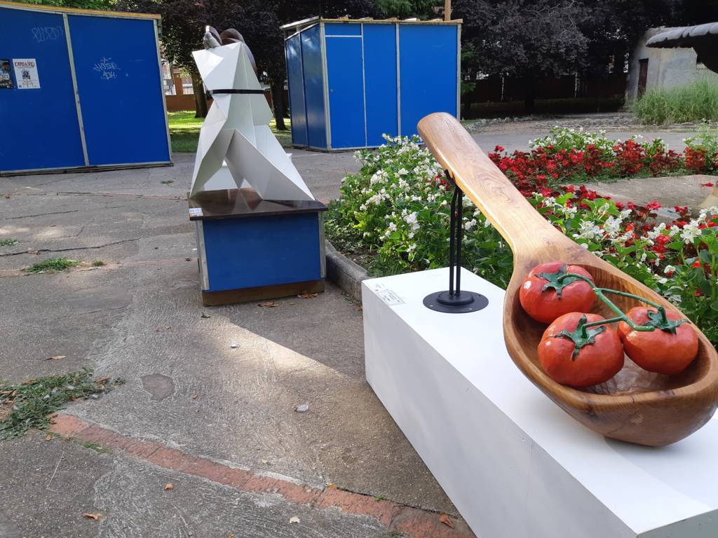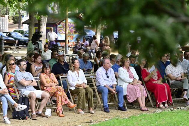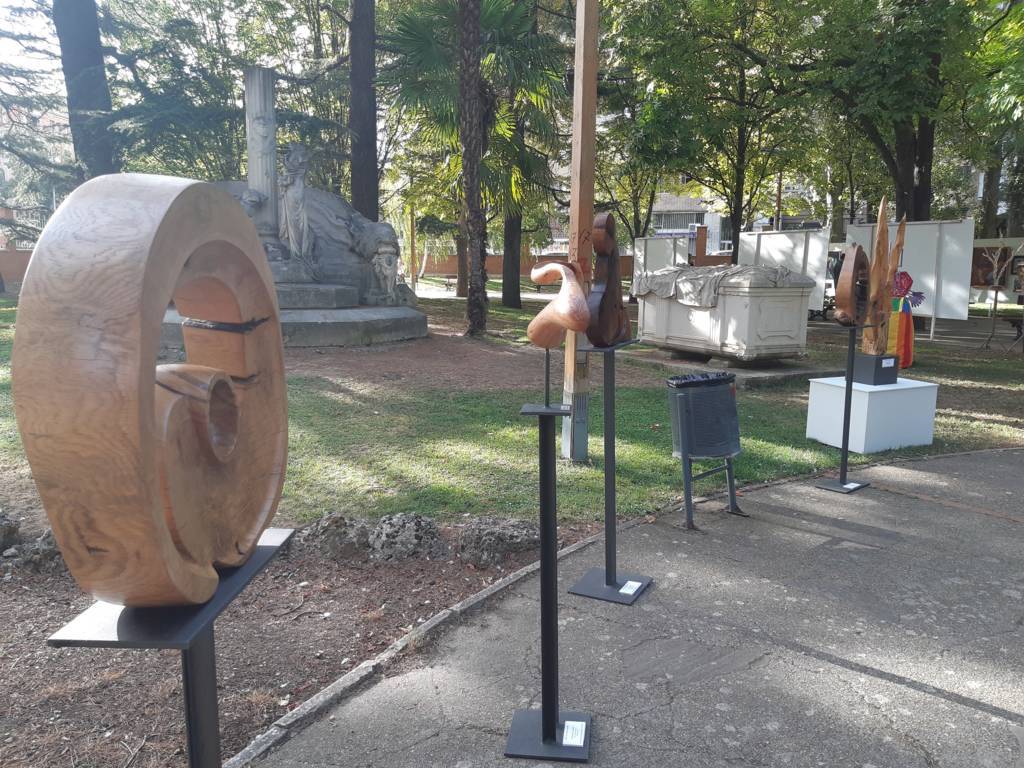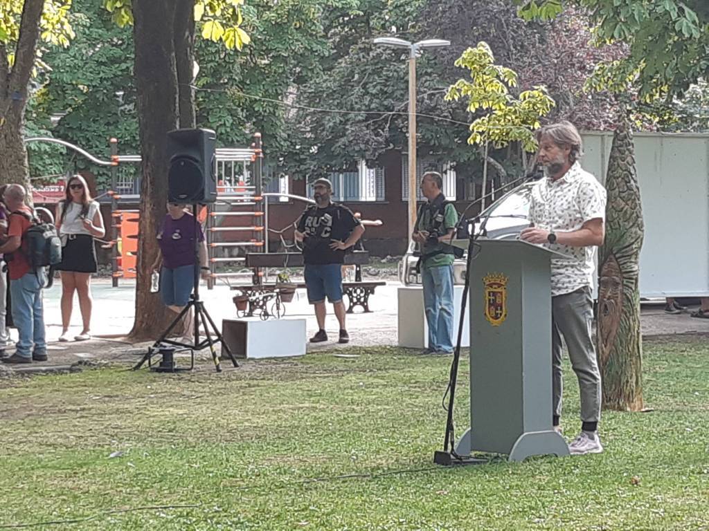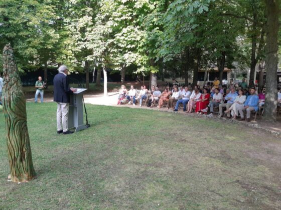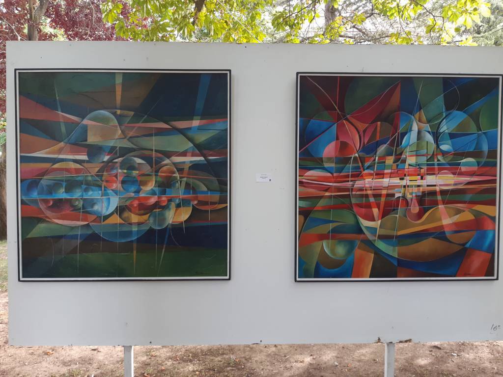 El arte al aire libre. Bajo el manto de los árboles hoy mecidos con moderada intensidad. Otras jornadas como sombra ante el calor que se espera vuelva a lo largo de la semana. Con sonido del follaje como una nueva dimensión para saborear el arte en un espacio que comenzó a ganar relevancia para la cultura en la ciudad hace 40 años con Expo Aire, de la mano del Grupo Muriel, como ha recordado esta tarde la alcaldesa de Palencia, Miriam Andrés en la vuelta de Expo Aire a este espacio.