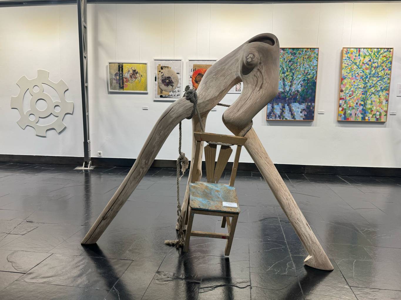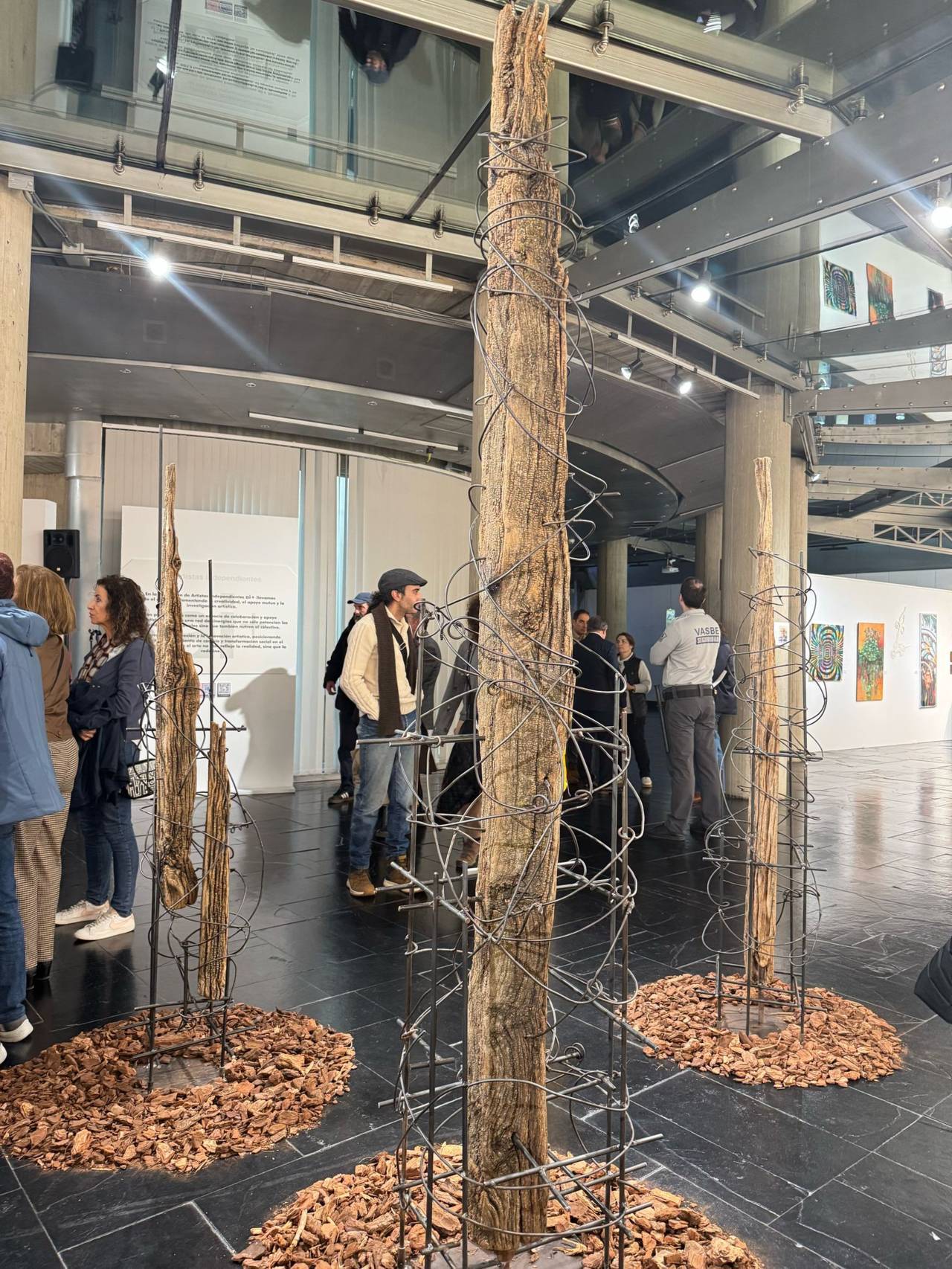 Tiempo inmortalizado en un papel de periódico, como en el collage de María José Amor, El pasado en el presente, curiosa mezcla que nos pone en ese lugar imposible que habitamos cada instante, donde la memoria es también parte de la realidad. Porque el tiempo se imprime, a veces, en los materiales, como el del tronco ajado por el tiempo atmosférico, que ha terminado por convertirse en arte en manos de Alfredo Martín “Chis”.