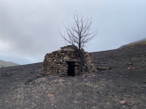 Asimismo, el incendio afectó al chozo de la Maja de los Bueis, una construcción de piedra en seco utilizada desde tiempos inmemoriales por los ganaderos locales, que ha sufrido un importante daño en su cubierta.