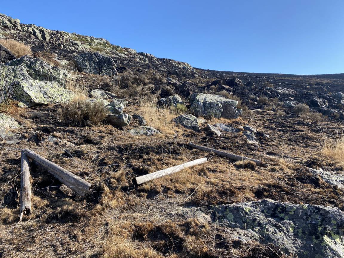 Los daños más significativos se localizan en los cerramientos ganaderos, utilizados tradicionalmente para delimitar los pasos del ganado por los diferentes pastos y puertos de montaña. Las estacas de madera quedaron completamente calcinadas, y los alambres se encuentran hoy en el suelo, inutilizados.