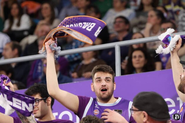 Ayer, en una jugada muy parecida, saque de banda a favor de los morados a tres segundos, pero sin triple, sino metiendo el balón a la olla para que Krutwig pusiera por delante a los palentinos, desató los mismos megatones de potencia.