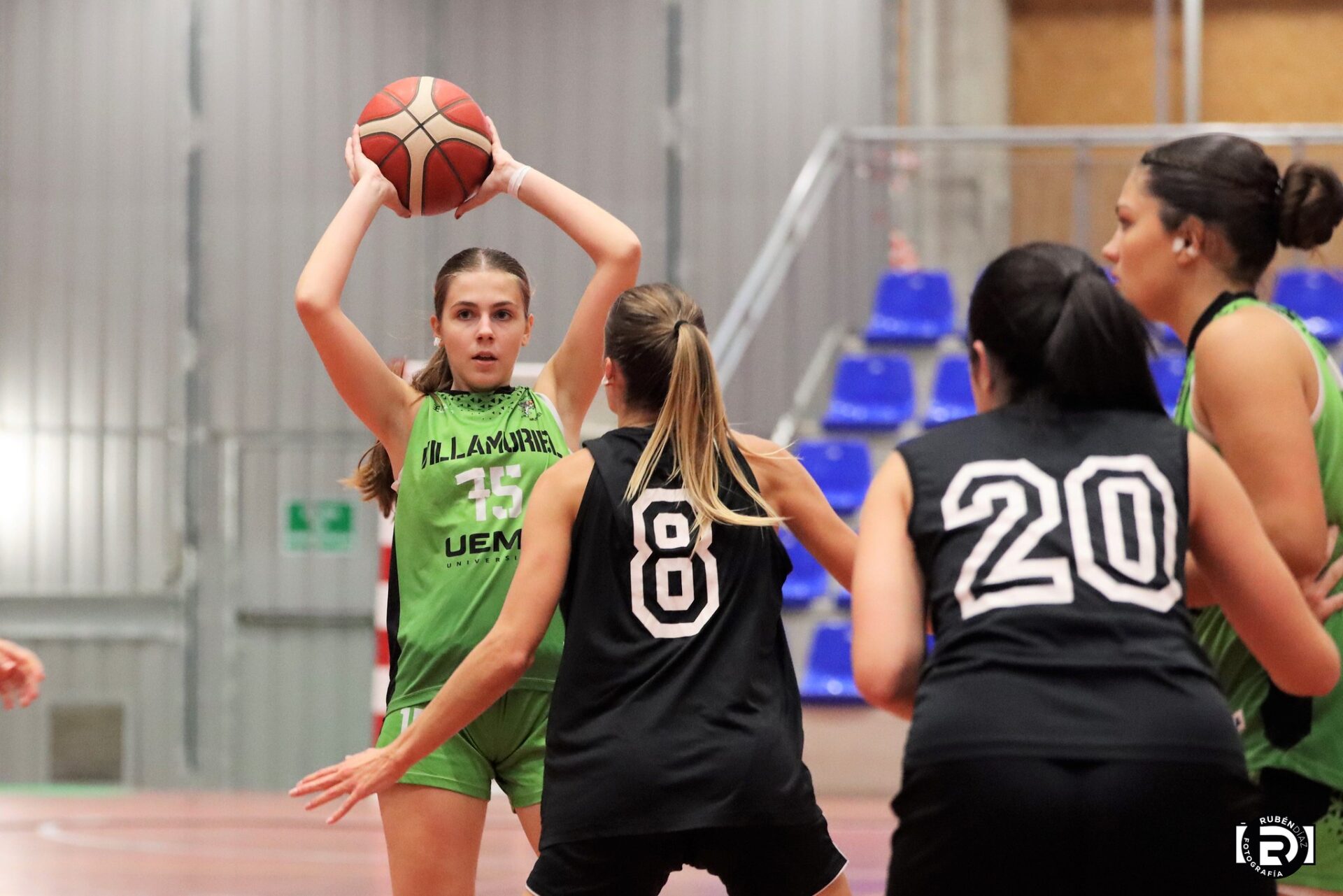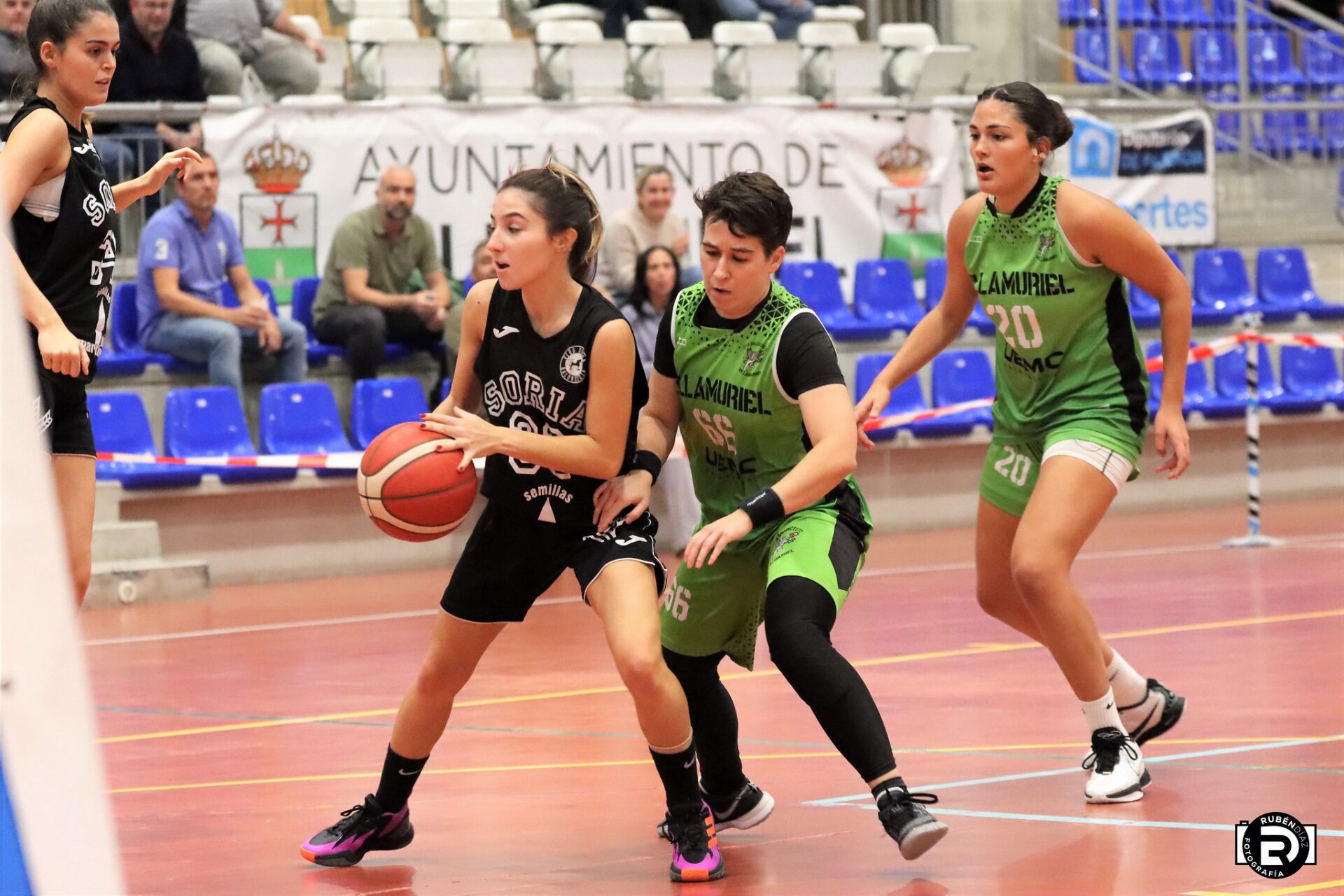 Comenzaron las locales mandando en el marcador, con defensas asfixiantes que lograban luego transformar en puntos en el aro rival, pero según se iba acercando el descanso las sorianas encontraban los huecos que iban dejando las locales atrás para reducir la ventaja e irse solo seis abajo al descanso (40-34). Por momentos el partido era un carrecalles y se impuso el desorden táctica por ambos equipos, el desgaste físico hacía mella en las jugadoras de ambos equipos y eso hacía que varios tiros fuesen precipitados o se tomasen malas decisiones en ataque.