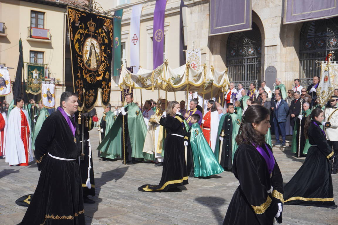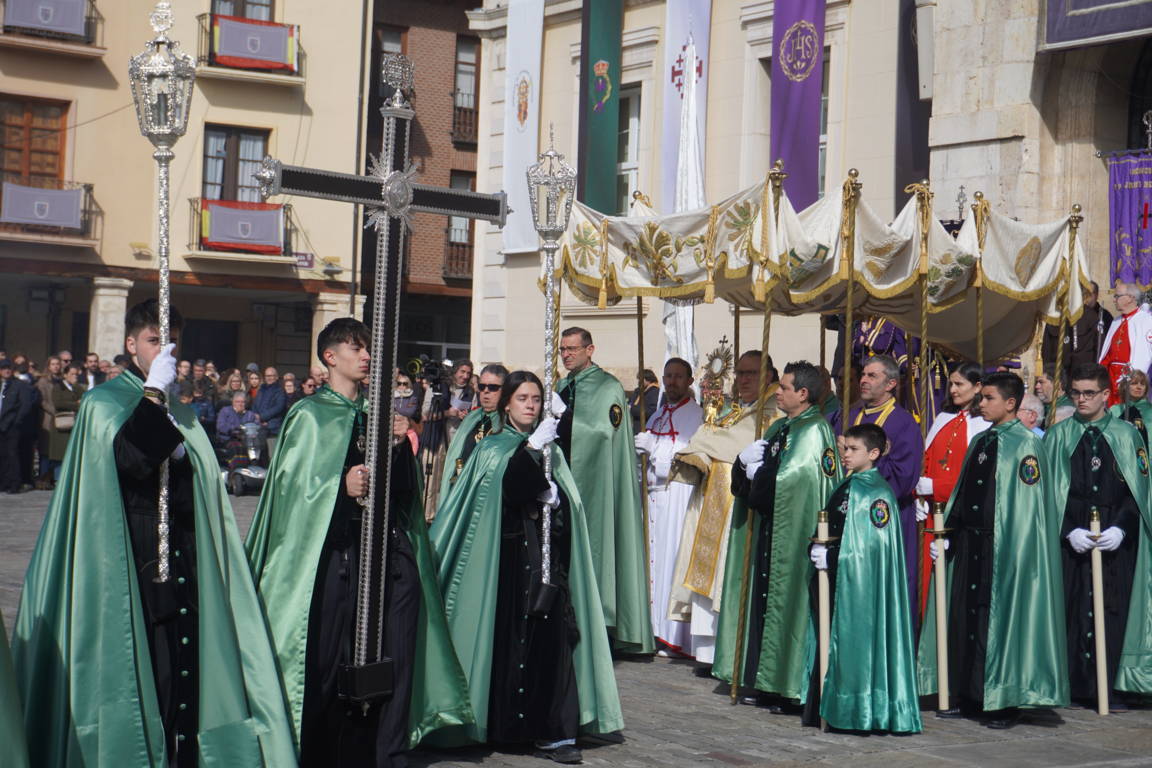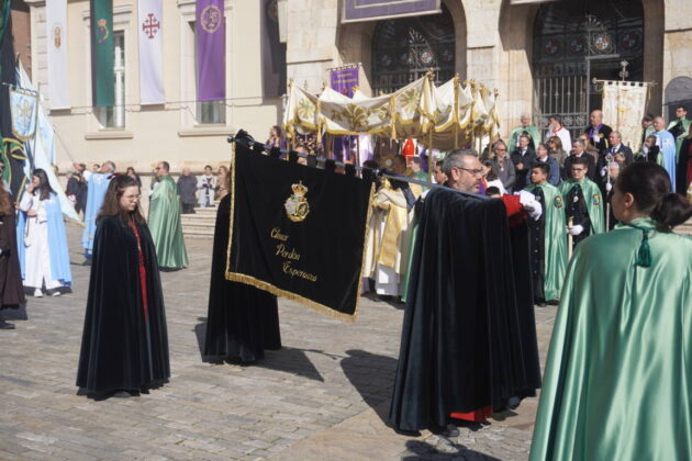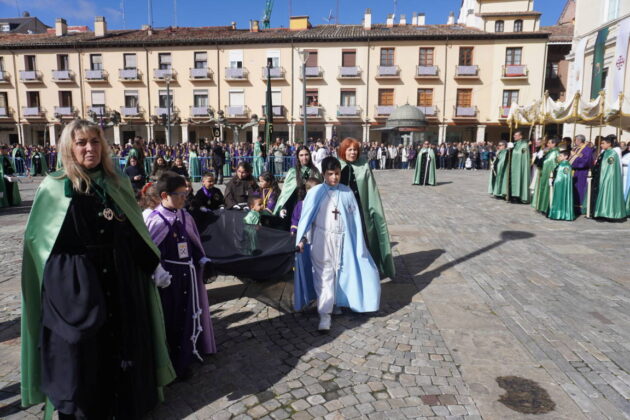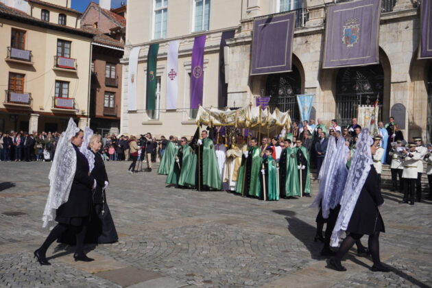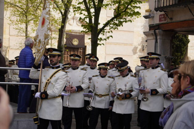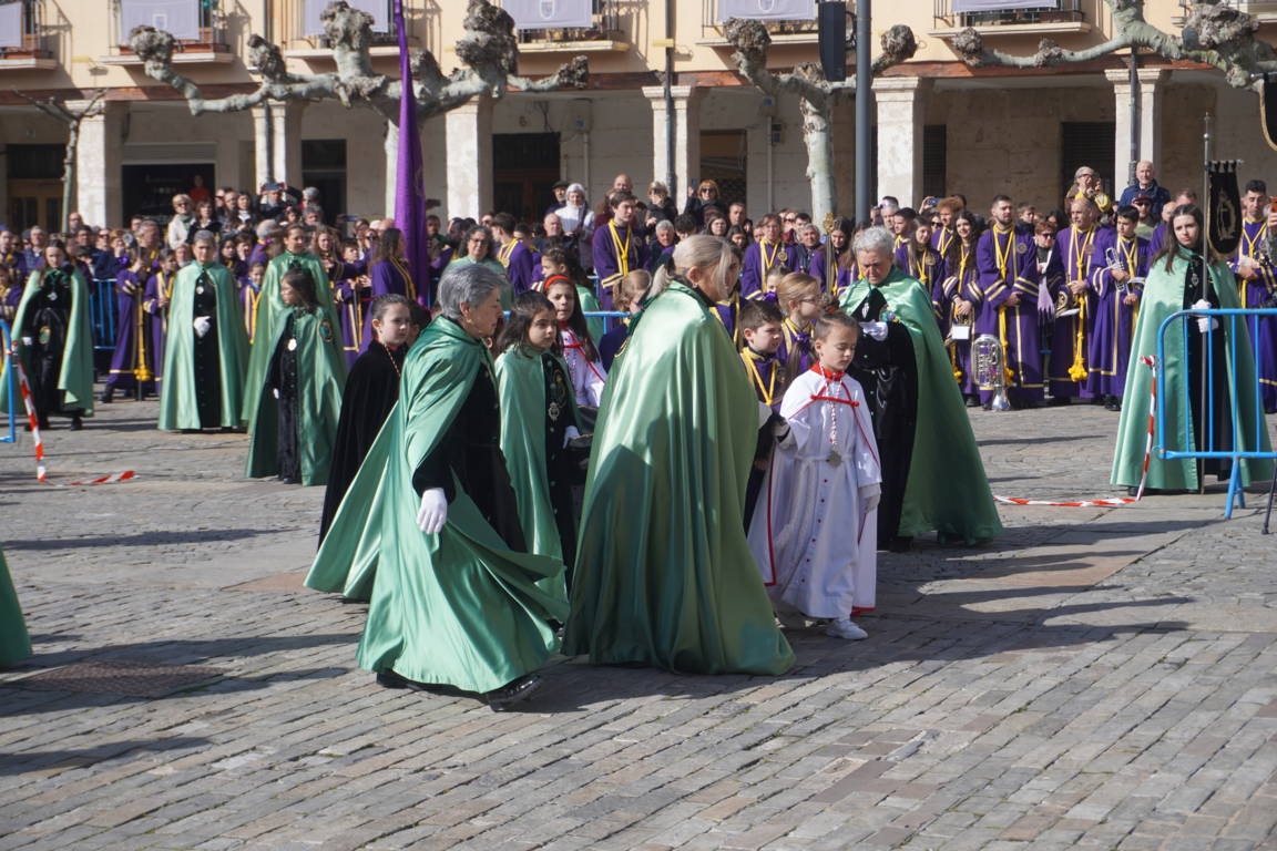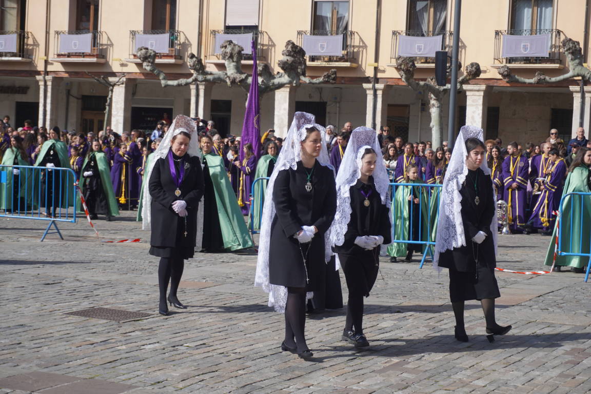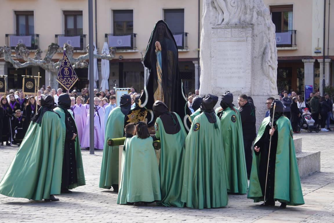 La más temprana de todas las que durante la Semana Santa recorren las calles de la capital palentina y de las pocas que este año se han salvado de la lluvia y que además han gozado de la claridad del cielo. Es como si el Domingo de Resurrección le quitara el velo no solo a la virgen, sino también al cielo para que el sol brillara mientras los cofrades palentinos acompañaban al Santísimo bajo palio al encuentro con la Virgen del Rompimiento (Anónimo, de 1929) para hacer partícipe de su resurrección.