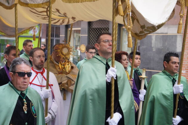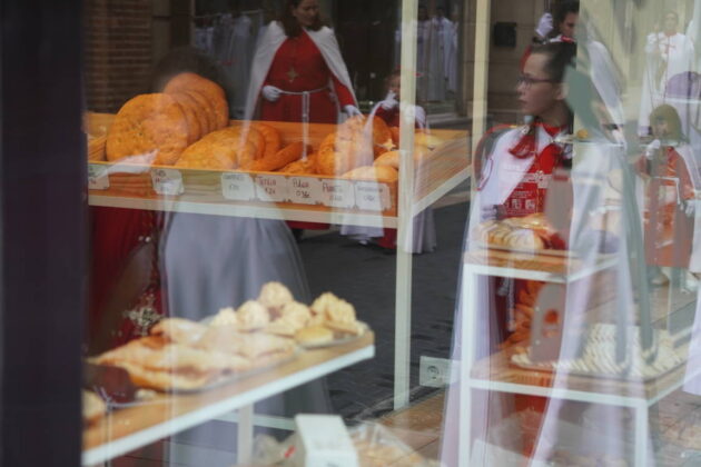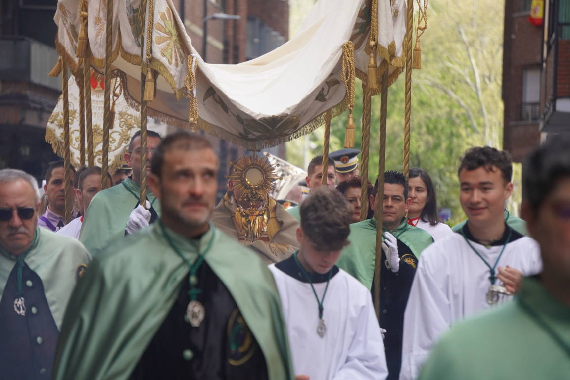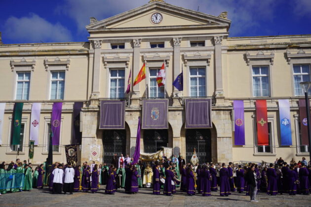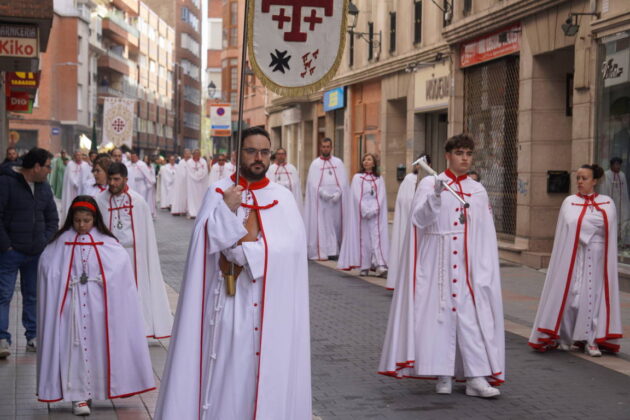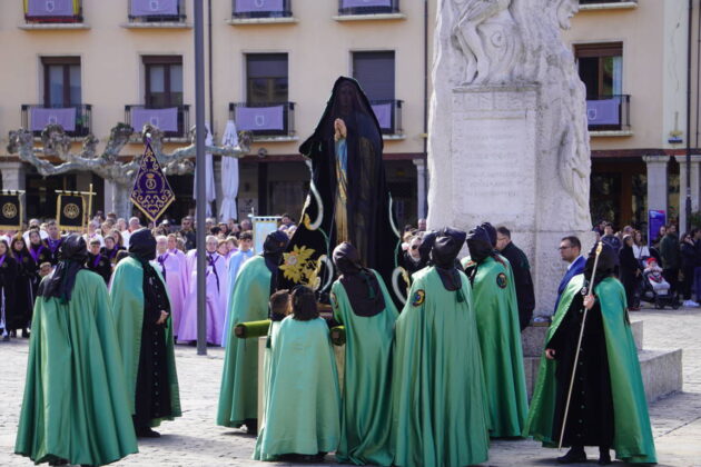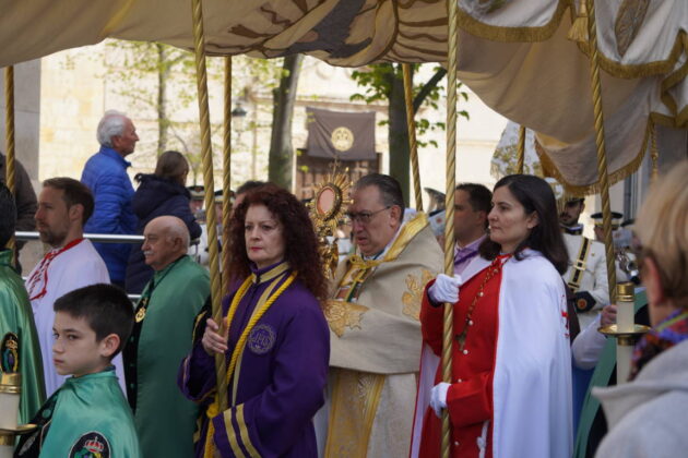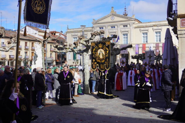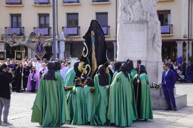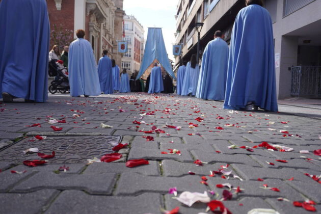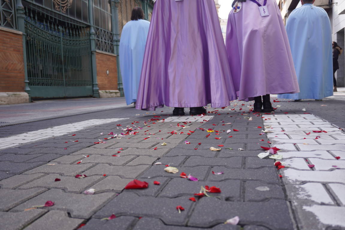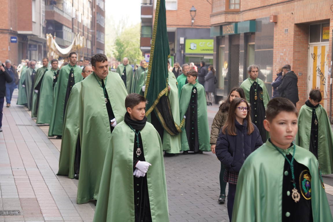 La más temprana de todas las que durante la Semana Santa recorren las calles de la capital palentina y de las pocas que este año se han salvado de la lluvia y que además han gozado de la claridad del cielo. Es como si el Domingo de Resurrección le quitara el velo no solo a la virgen, sino también al cielo para que el sol brillara mientras los cofrades palentinos acompañaban al Santísimo bajo palio al encuentro con la Virgen del Rompimiento (Anónimo, de 1929) para hacer partícipe de su resurrección.