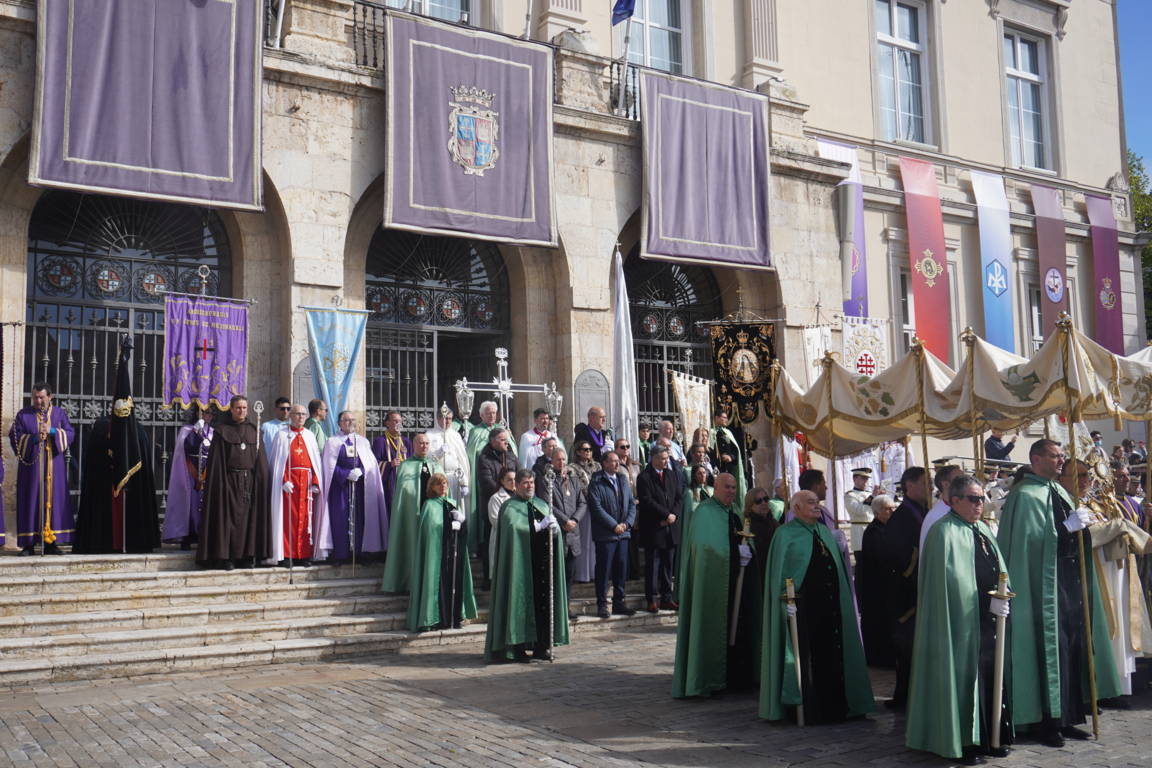 A las 10,46 tuvo lugar el Rompimiento del Velo, el punto álgido de la procesión tras el cual, las diferentes hermandades empezaron a pasar y mostrarse ante el santísimo para comenzar el regreso hasta San Pablo, donde se dio por concluido el último desfile y por tanto la Semana Santa de Palencia 2025 a la que la lluvia le ha robado demasiadas procesiones.