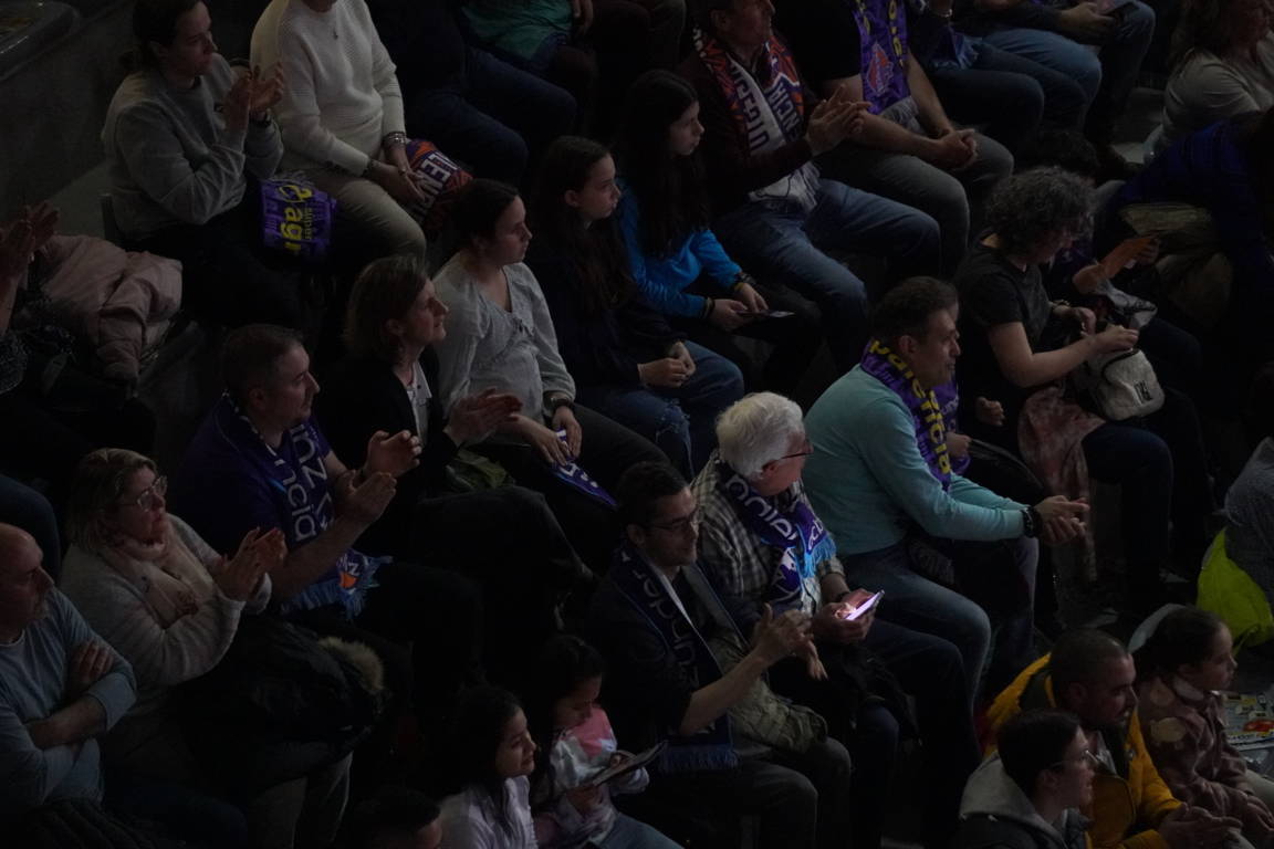 Pero también la afición está, llena las gradas, levanta la bufanda, para hacerse notar ante los contrarios y el trio arbitral. Javier Zamora, entrenador del Menorca, destacaba en rueda de prensa “la puesta en escena” del Palencia Baloncesto. De su afición. En un partido en que, todo sea dicho, en algunas jugadas blanditas de los morados, se escucharon murmullos de desaprobación. “De morado se luchan todos los balones”, daba a entender el graderío.