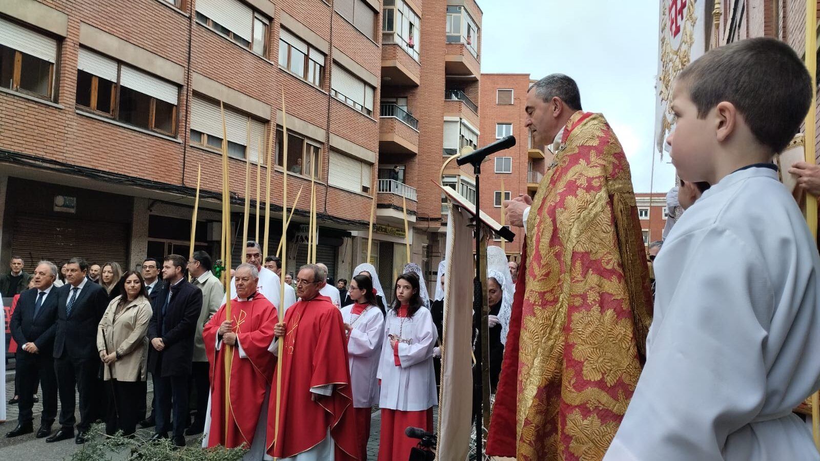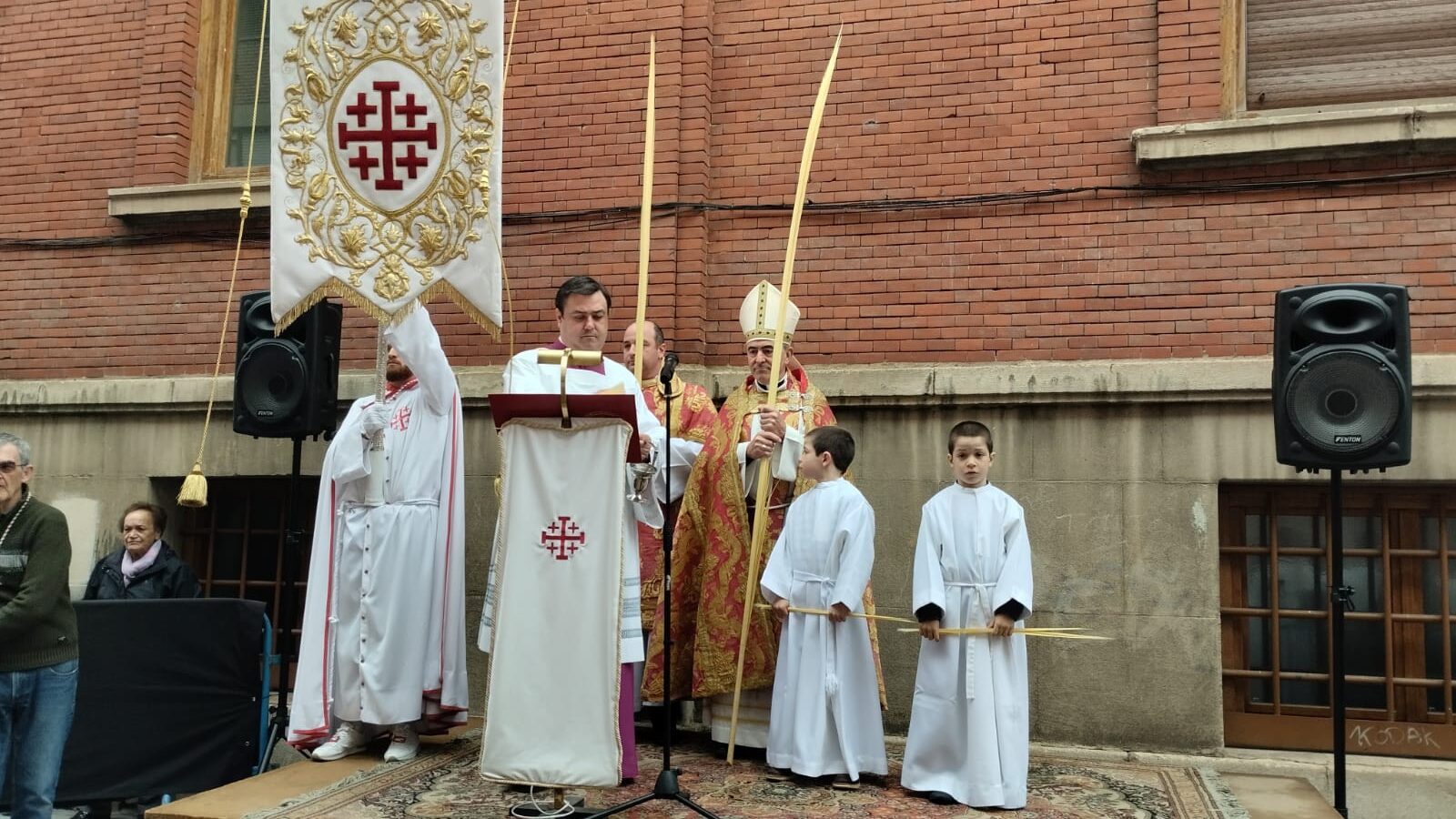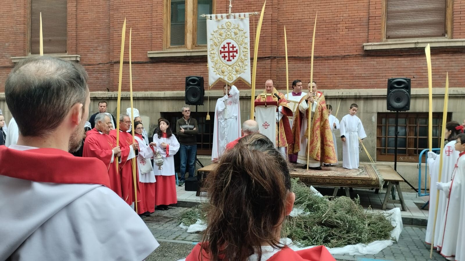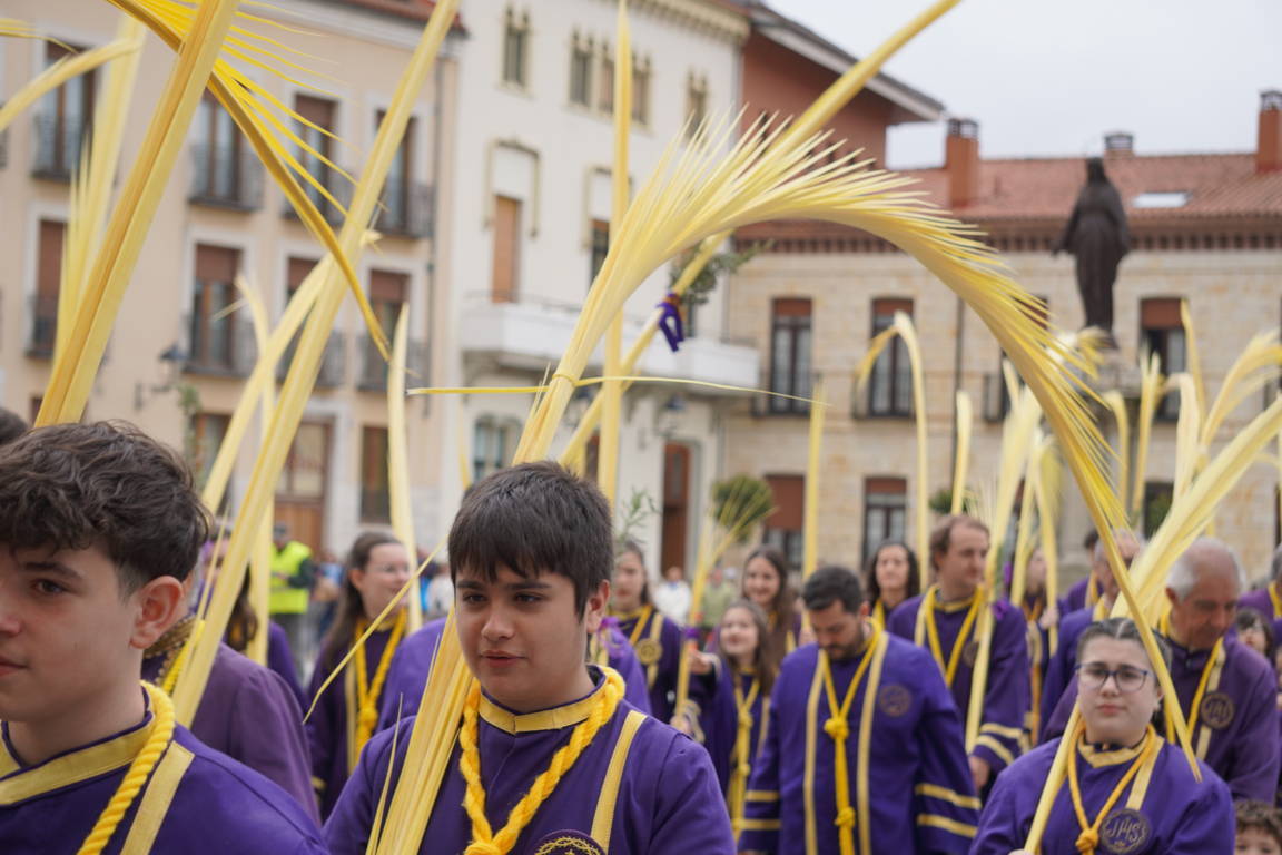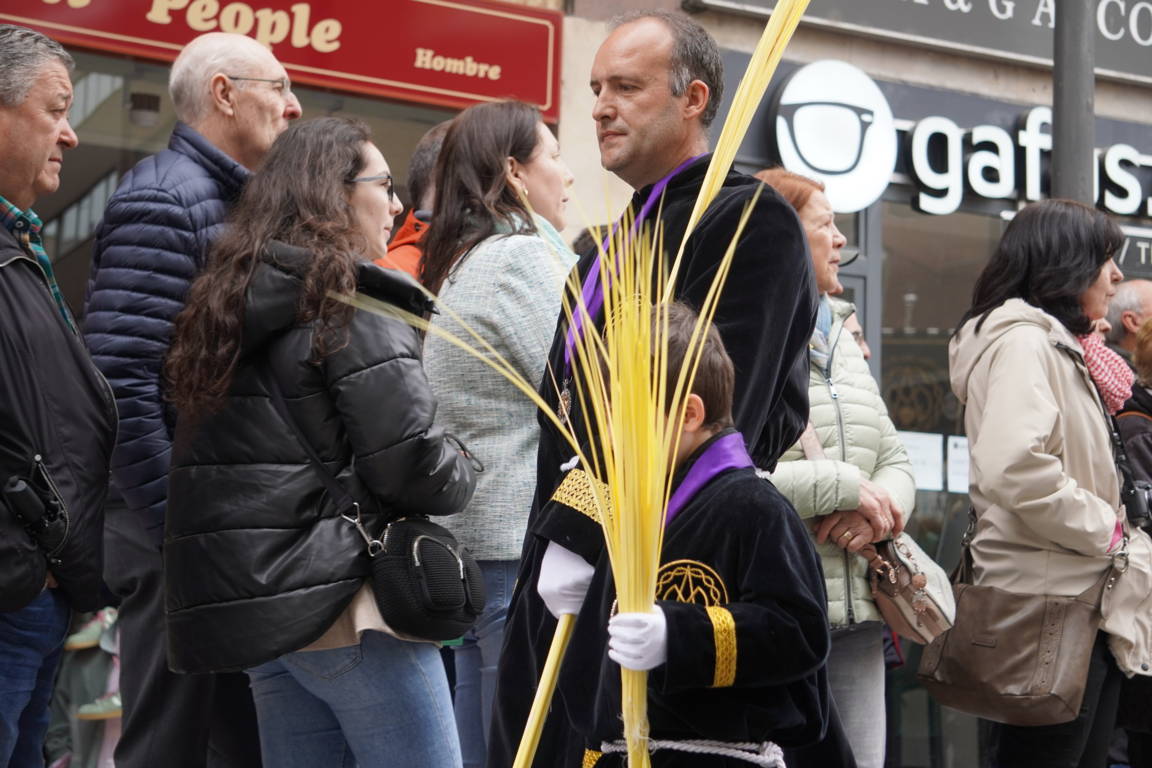 Si en el Domingo de Ramos hay un acto casi primordial es la bendición de las ramas. Esta tuvo lugar en la Cofradía del Santo Sepulcro a media mañana. Desde allí partió una comitiva reducida hacia la Catedral, donde el obispo de la Diócesis, Mikel Garciandía, ofició la eucaristía previa a la procesión.