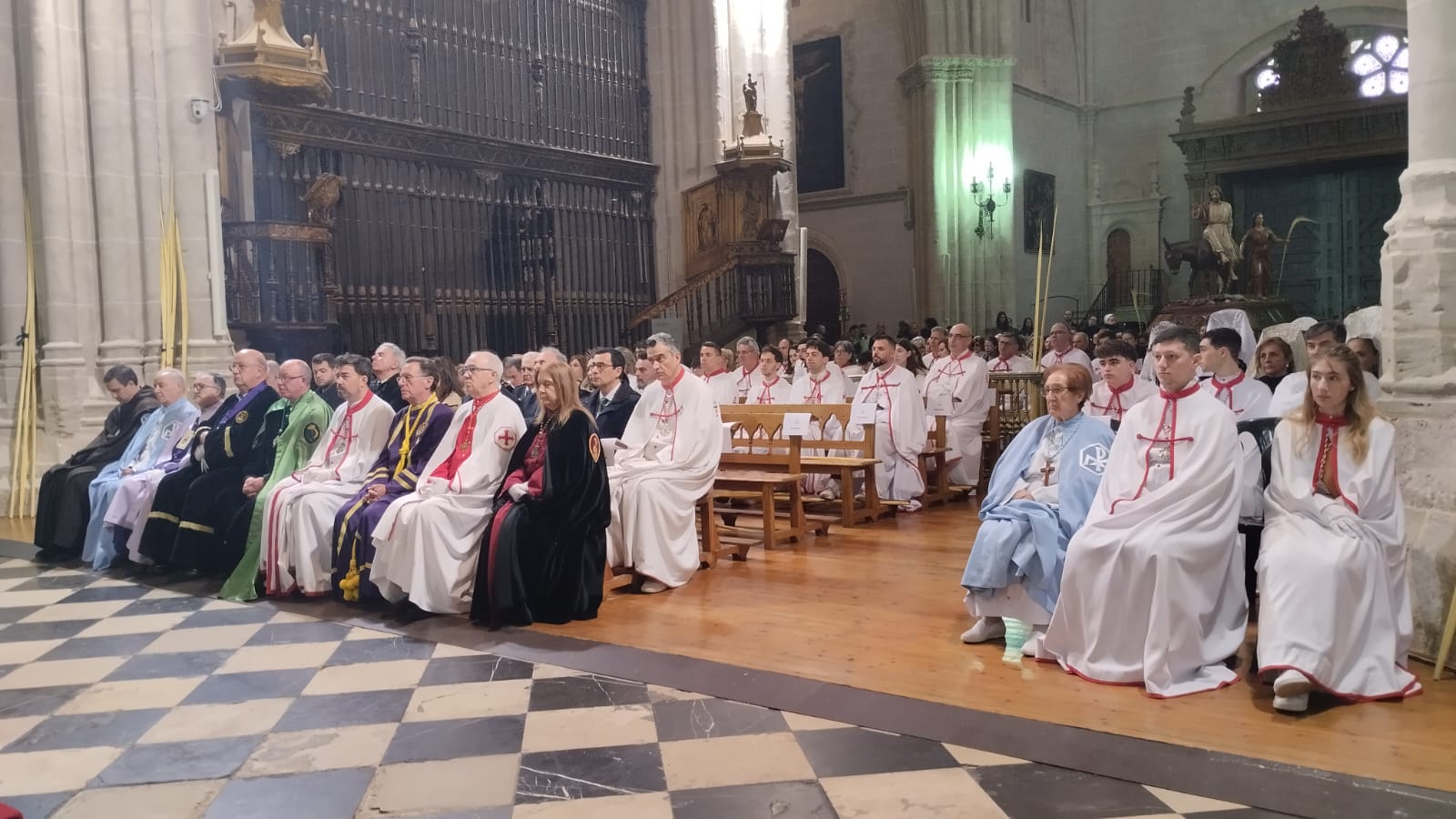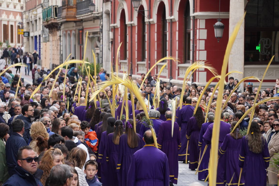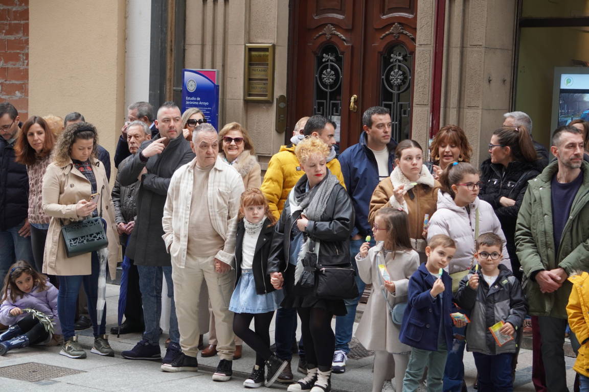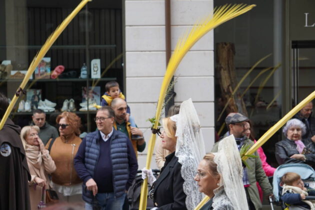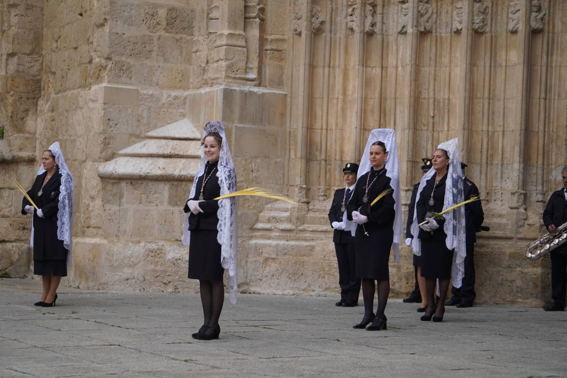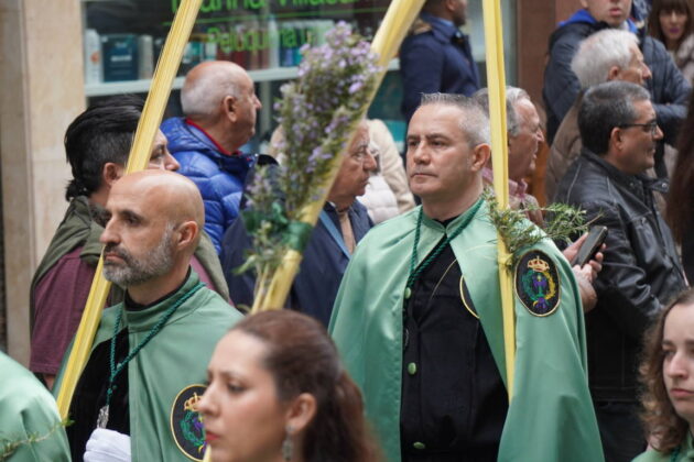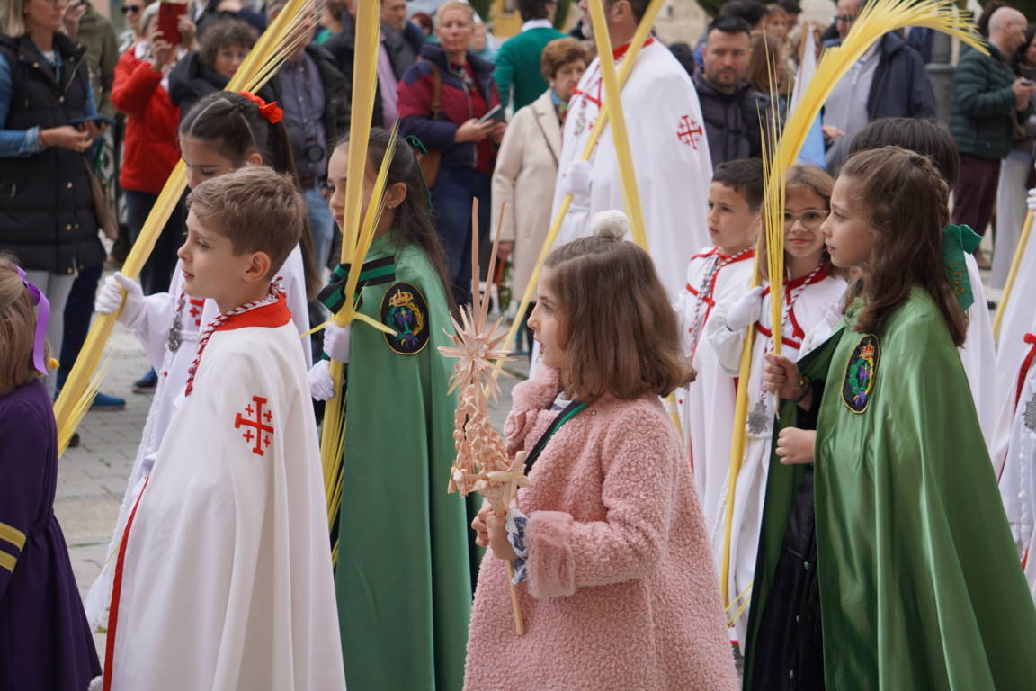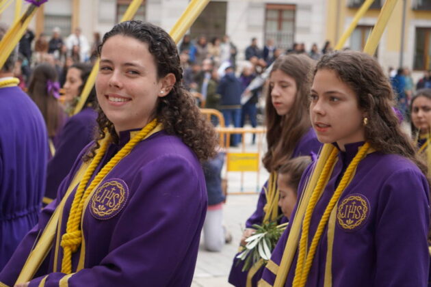 La de La Borriquilla, por ese carácter especial, triunfante, emulando la triunfal entrada de Jesús en Jerusalén, congrega a miles de cofrades. De todas las edades, a cara descubierta aún. Eso provocó que desde que el primer cofrade salió de la plaza de la Inmaculada hasta que La Borriquilla echó a rodar pasaran cerca de 35 minutos. Tiempo en el que las palmas batían ante la Catedral.