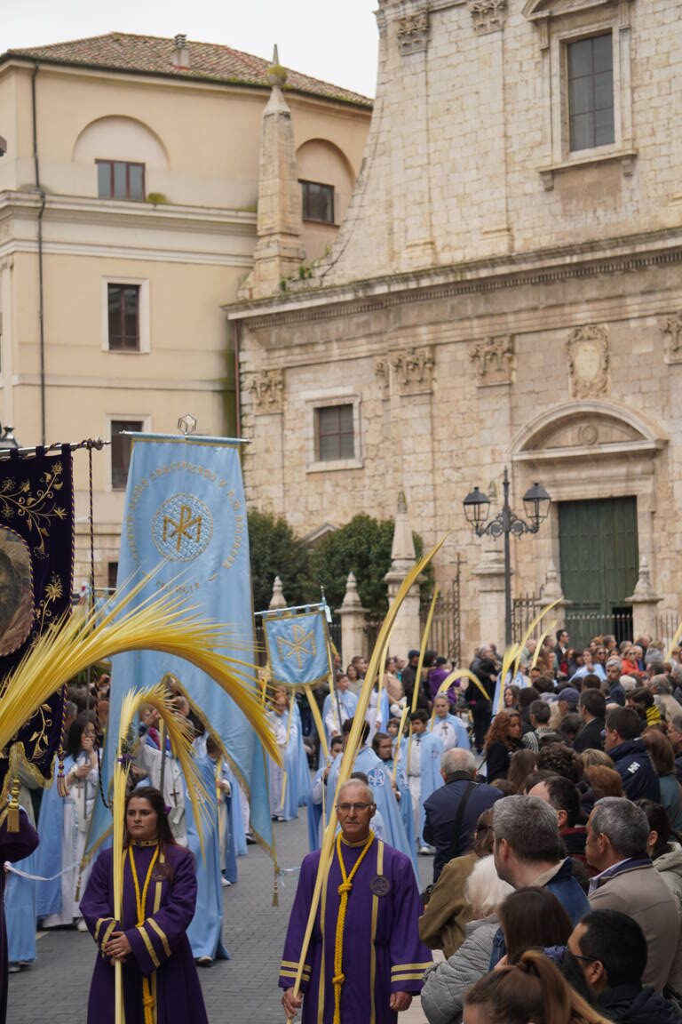 Es un día especial. Es el día que comienza todo en la Semana Santa. Es cierto que hay otras procesiones previas en la Pasión palentina ( sin quitarles un ápice de intensidad y de sentimiento e importancia), pero la de La Borriquilla, organizada por el Santo Sepulcro, es la que a nivel más sensación de arranque profesa. Y esta Semana Santa palentina, tan amenazada por la lluvia, ha sido el primero de los desfiles procesionales que ha cuajado su presencia en las calles de la ciudad. La Semana Santa ha entrado triunfante en Palencia hoy Domingo de Ramos
