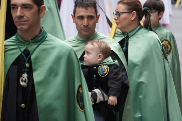 Muchos niños en la procesión, cómoda, al mediodía, para ellos. Algunos en brazos de sus padres o abuelos. Una bienvenida triunfal también para ellos a la Semana Santa.