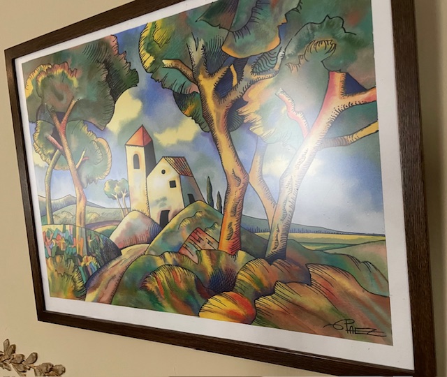 La exposición del Casino se completa con dos cuadros que representan el pueblo de Frías desde el castillo y una ermita en mitad de un paisaje. En el primero destaca la línea recta de las construcciones, cercana al modo cubista, y el trazo grueso en que se apoya. En el segundo cuadro la luz se abre en torno al edificio en un paisaje idealizado que combina una paleta rica de colores y uso trazos potentes.