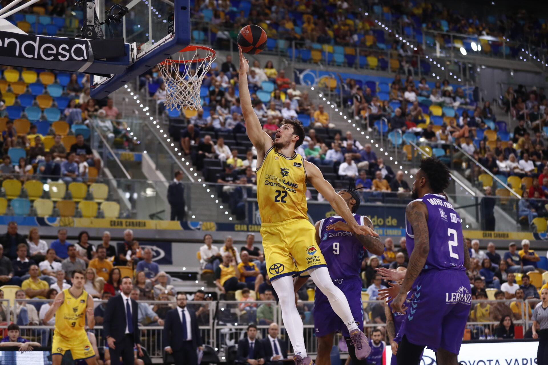Al final del primer cuarto, 22-13 para los canarios, merced a un lanzamiento de dos in extremis.