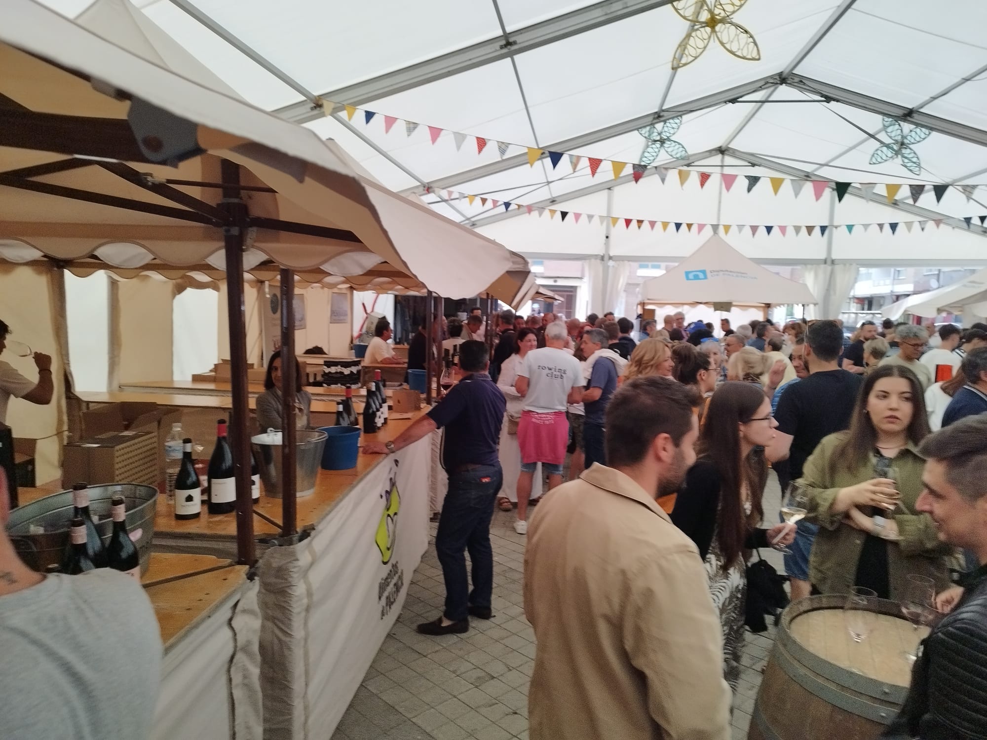 Once bodegas de distintas denominaciones y cuatro establecimientos de la zona ofrecieron vinos y tapas en una carpa abarrotada en la Plaza de la Constitución