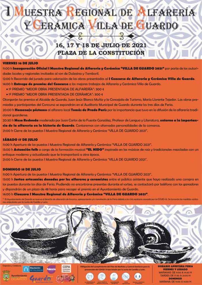 Durante años se celebró en Guardo una Feria de Artesanía para divulgación del conocimiento de nuevas y antiguas técnicas en la materia. Desde el Ayuntamiento quieren retomar esa tradición alfarera y, por ello, se convoca la Iª Feria de Alfarería y Cerámica de la Villa de Guardo 2021, “con el propósito de recuperar, en lo posible, esta tradición artesana que fue decisiva en el desarrollo económico de nuestro pueblo y que se puede consolidar como alternativa al pernicioso uso del plástico para recipientes, envases y decoración”, explican desde el Consistorio.