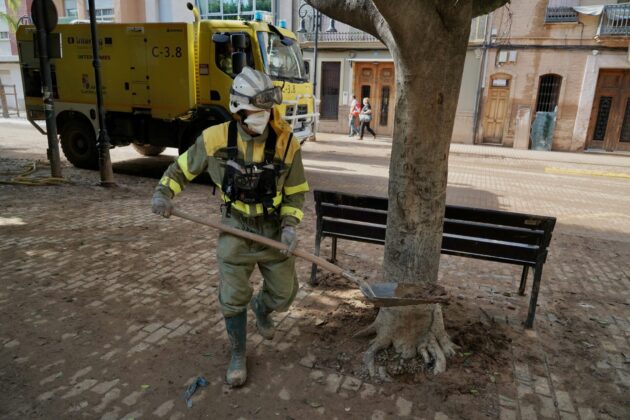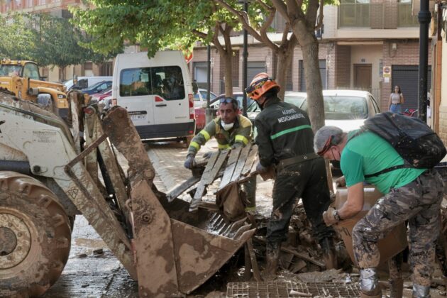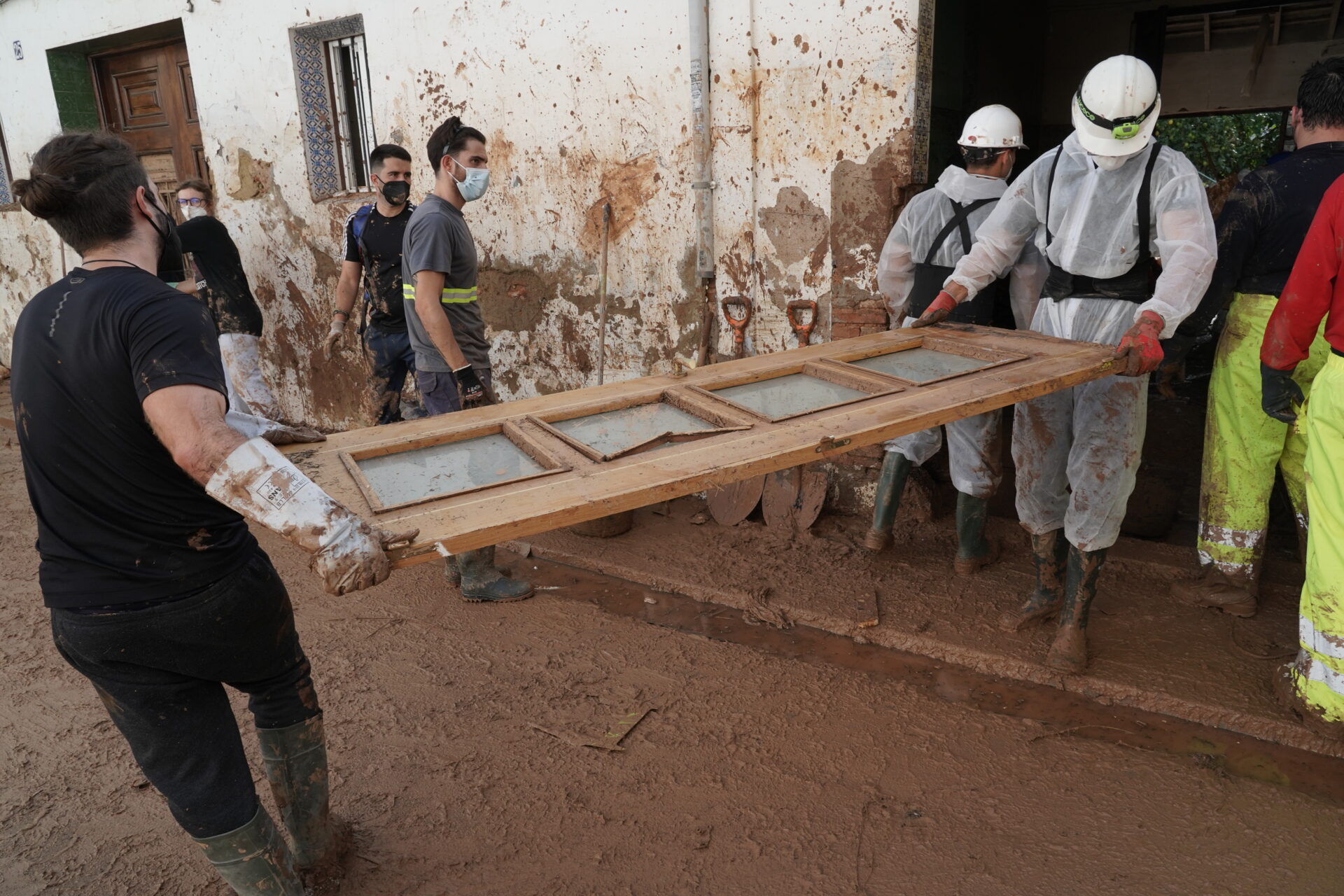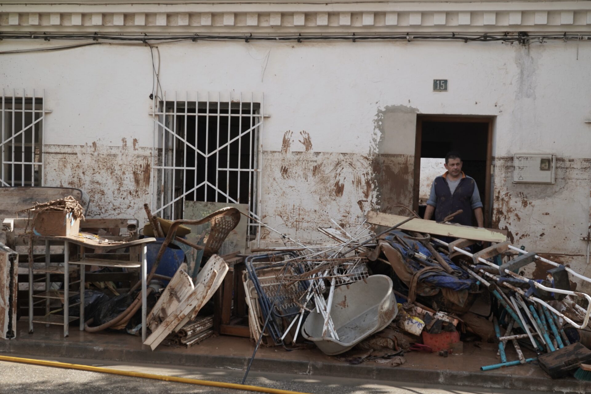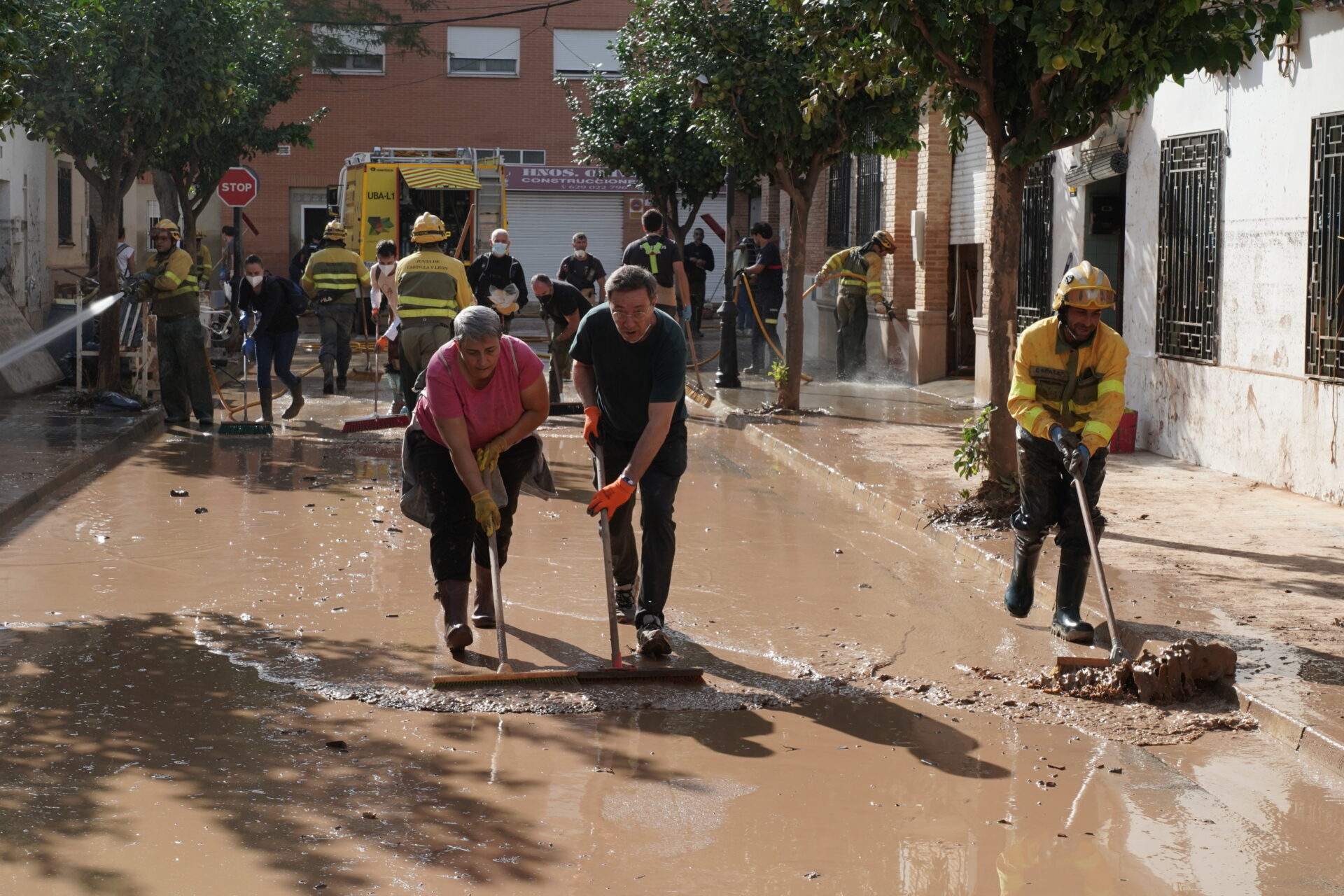 “Quiero dar un aplauso a los jóvenes, a los que se había criticado mucho estos años. Ellos son los primeros que han actuado desde el primer día”, manifiesta Tordera, que ayuda a una docena de chavales mientras cargan lodo en talegas y sacan muebles, bicis y estanterías ya deteriorados, que apilan en la calle y que cargan las máquinas pesadas de Castilla y León. De ahí, todas se trasladan en camiones a una gran explanada a las afueras de la localidad, donde el montón ya supera los 12 metros.