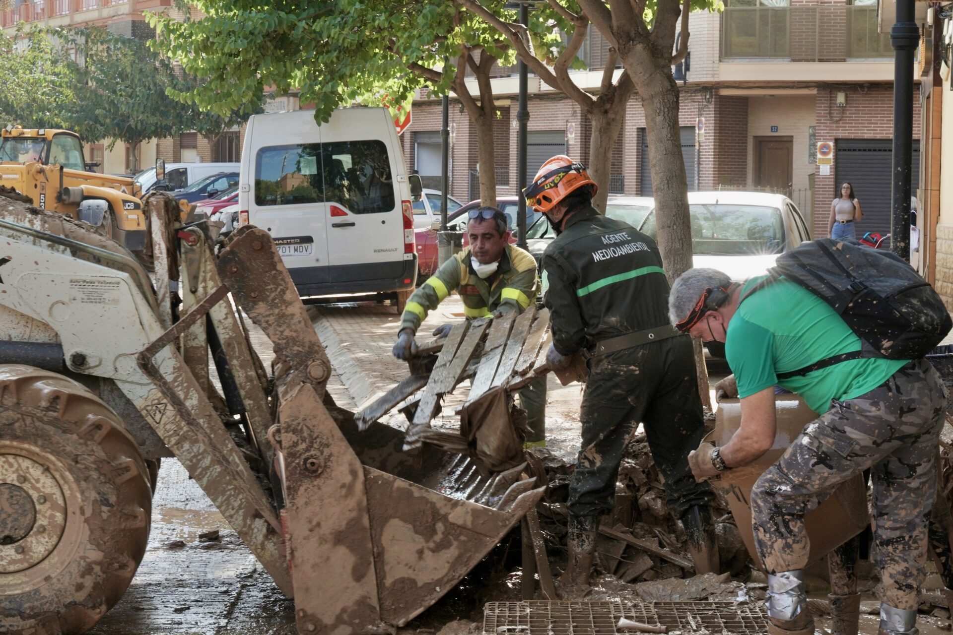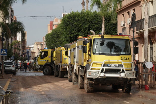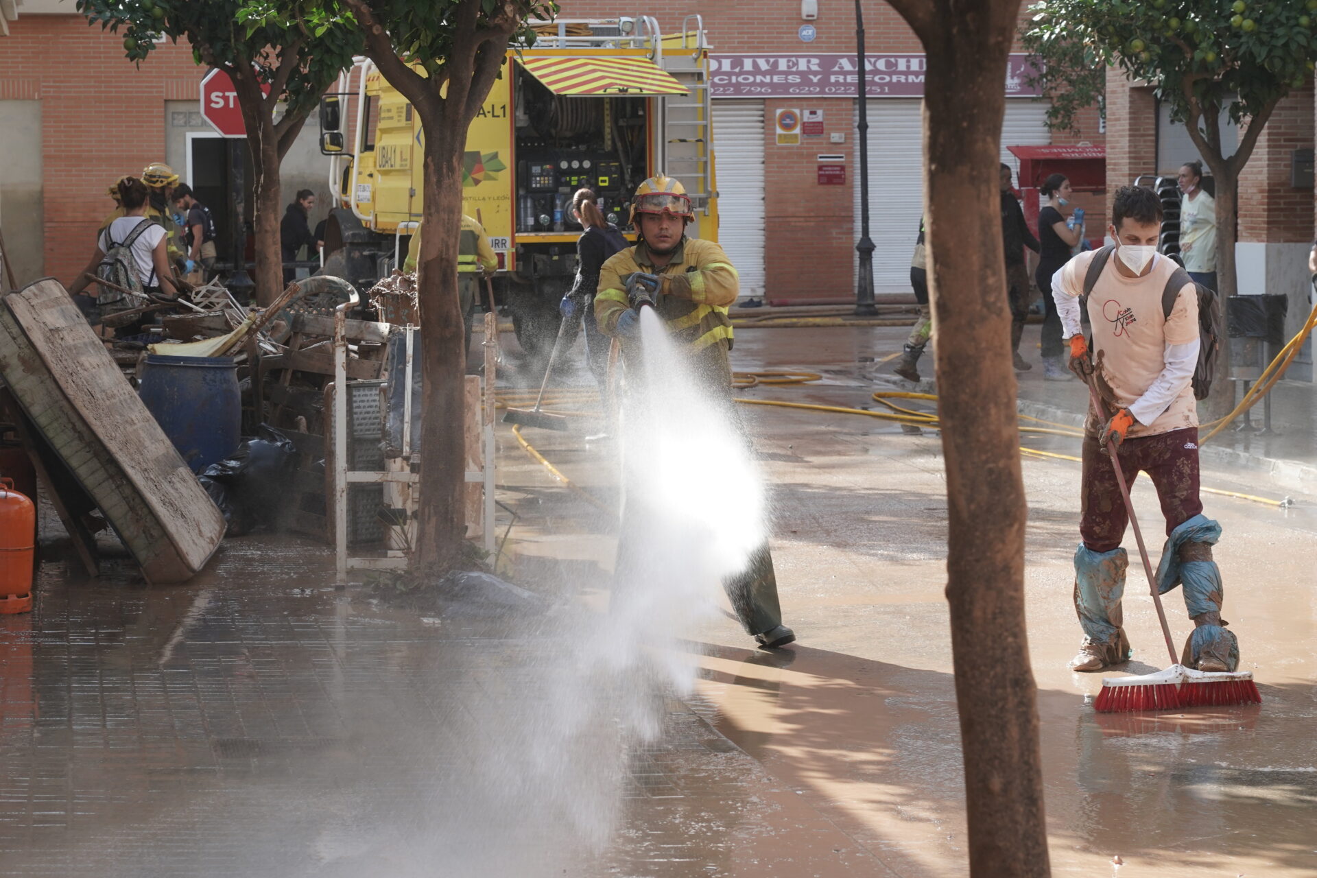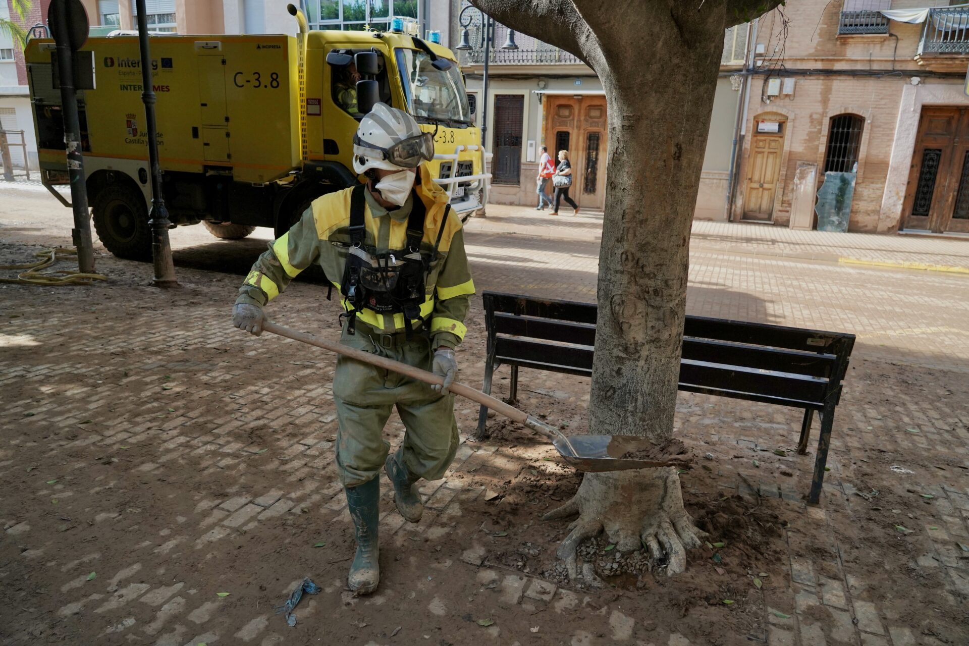 Caos, desazón y resignación en Aldaya: Castilla y León acude al rescate de miles de afectados por la Dana, donde varias dotaciones de bomberos son los primeros en llegar a numerosas calles de la población valenciana, aplaudidos como héroes
