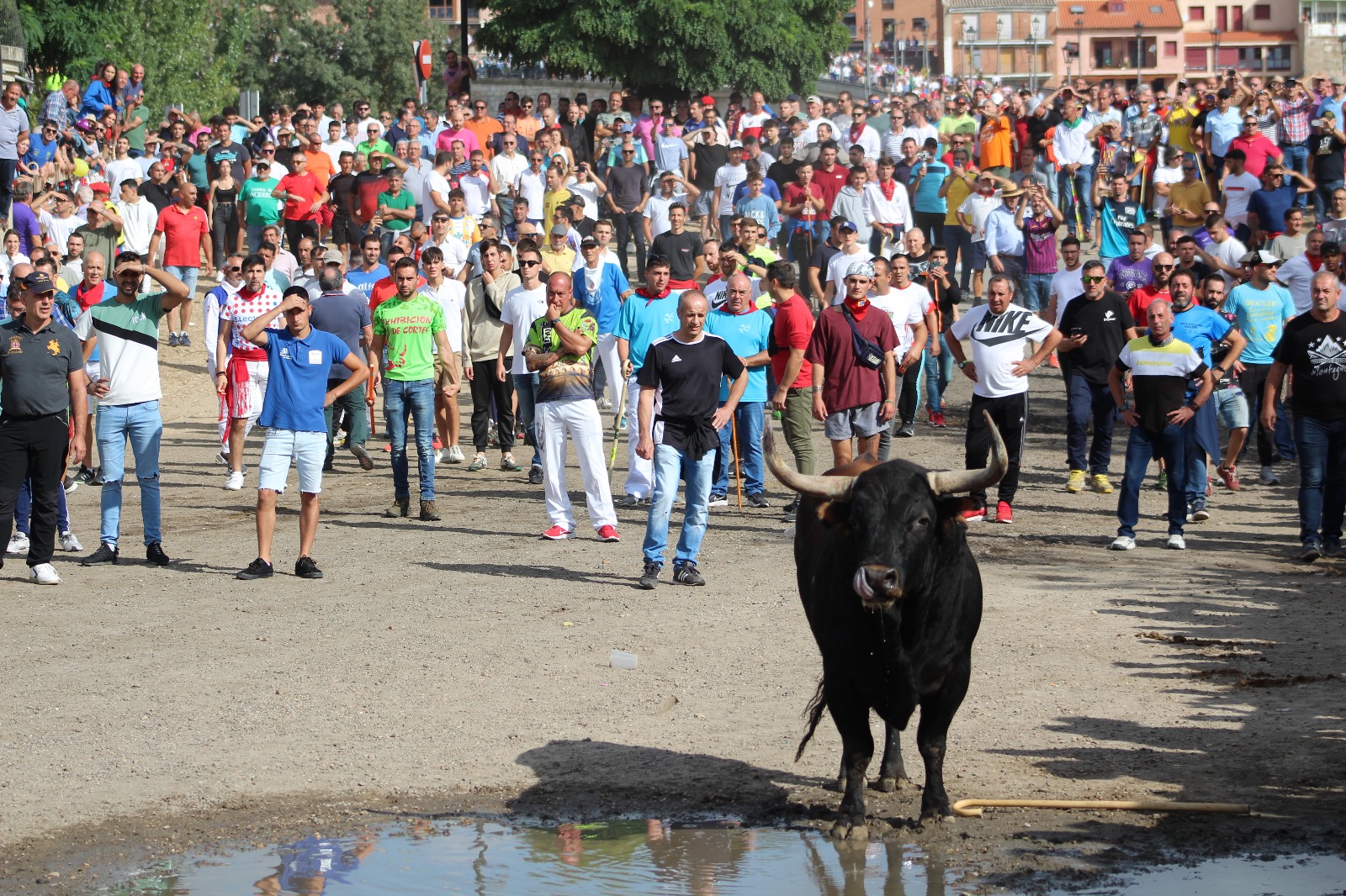 Puntual a las 11 horas, ‘Mirabajo’, de 550 kilos, un ejemplar de pelo castaño bocidorado, guarismo ocho y número once y nacido el 30 de diciembre de 2017, salió con el ya tradicional toque del reloj y el disparo de bombas y cohetes, que anunció la salida del morlaco desde la calle San Antolín hasta los prados de Zapardiel. El ejemplar, procedente de la ganadería salmantina de Don Pío Tabernero de Vilvís, ya dejó ver en los primeros compases del encierro su bravura.