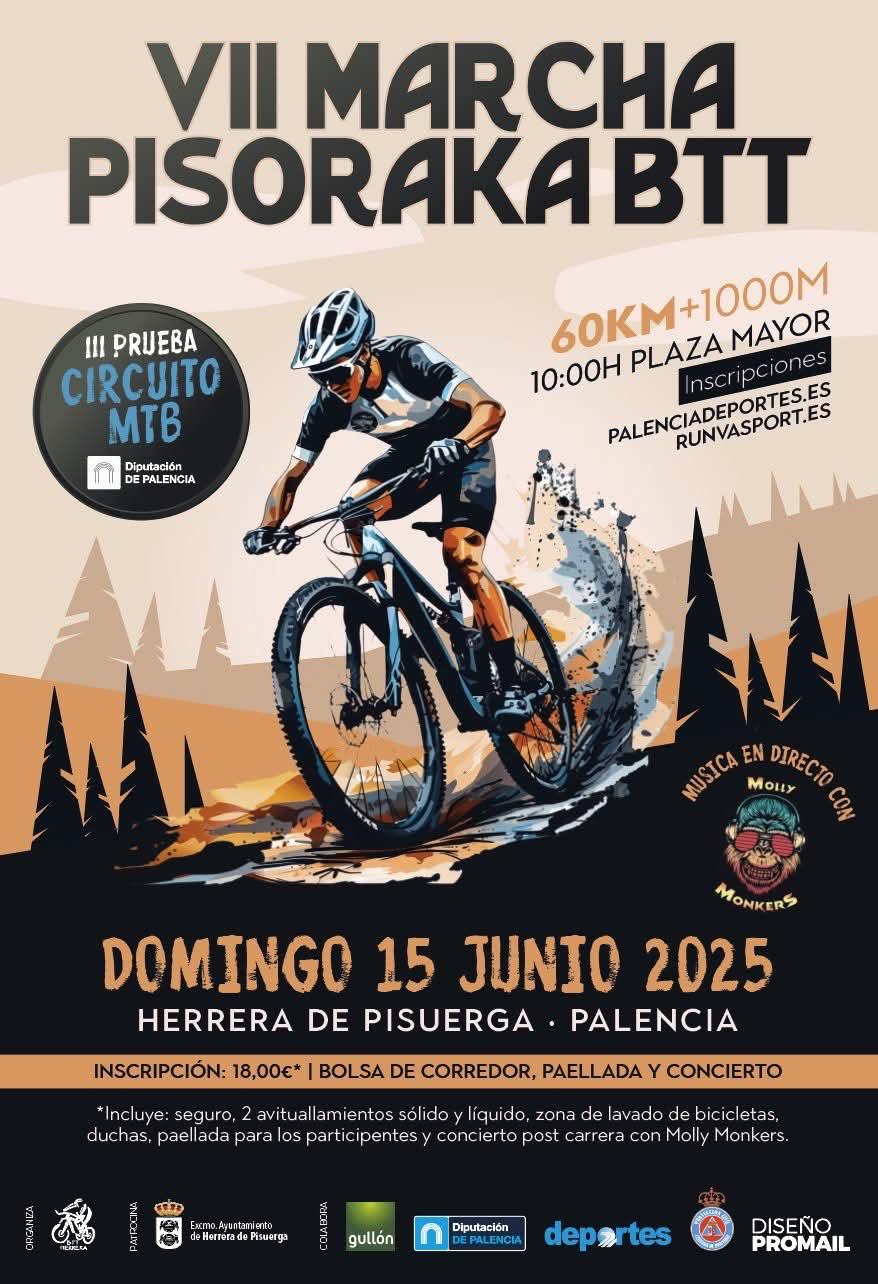 La VII Marcha Pisoraka BTT llega a Herrera de Pisuerga. Esta prueba, que forma parte del 3º Circuito Provincial BTT de la Diputación de Palencia, se celebrará el domingo, 15 de junio.