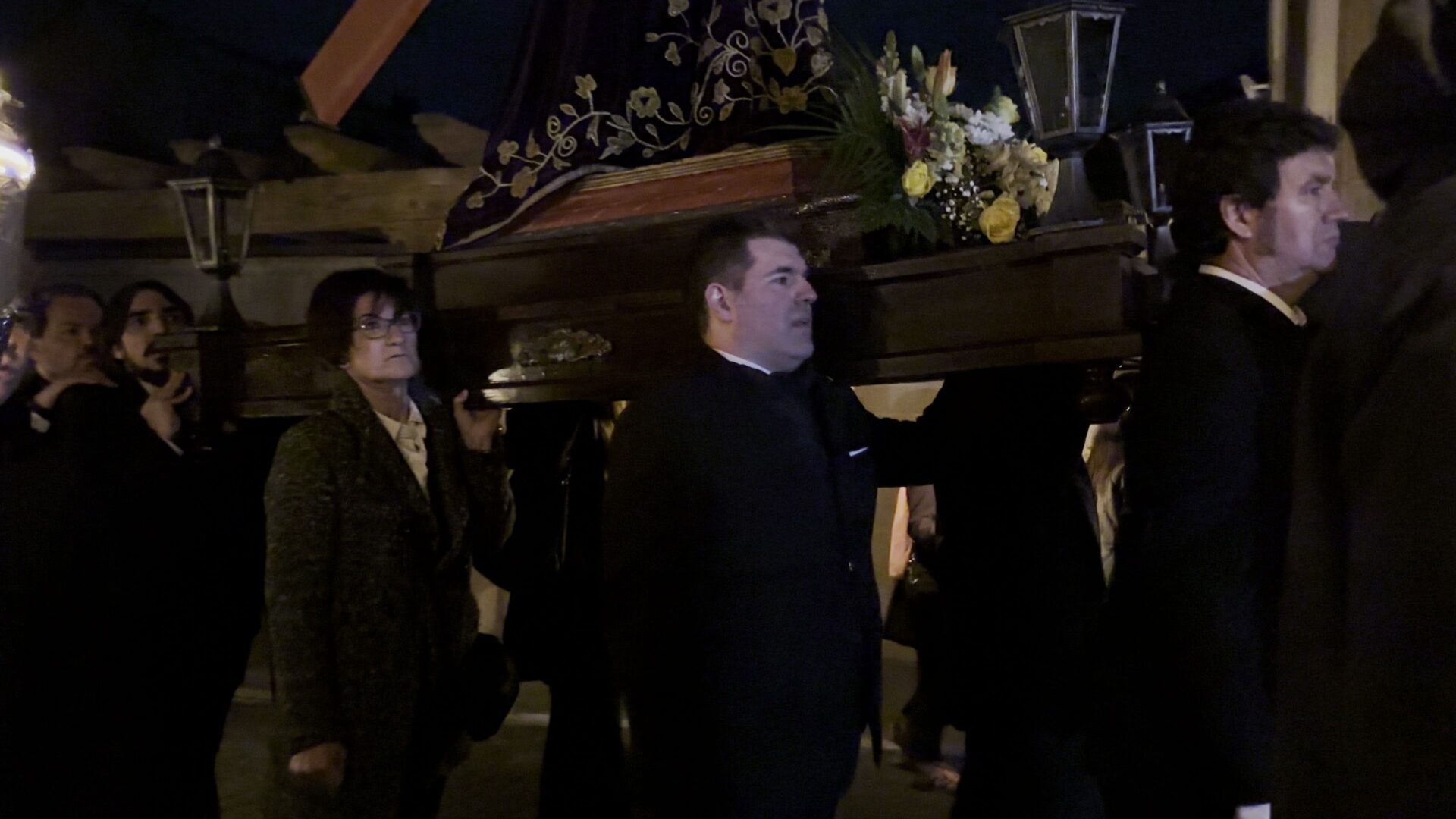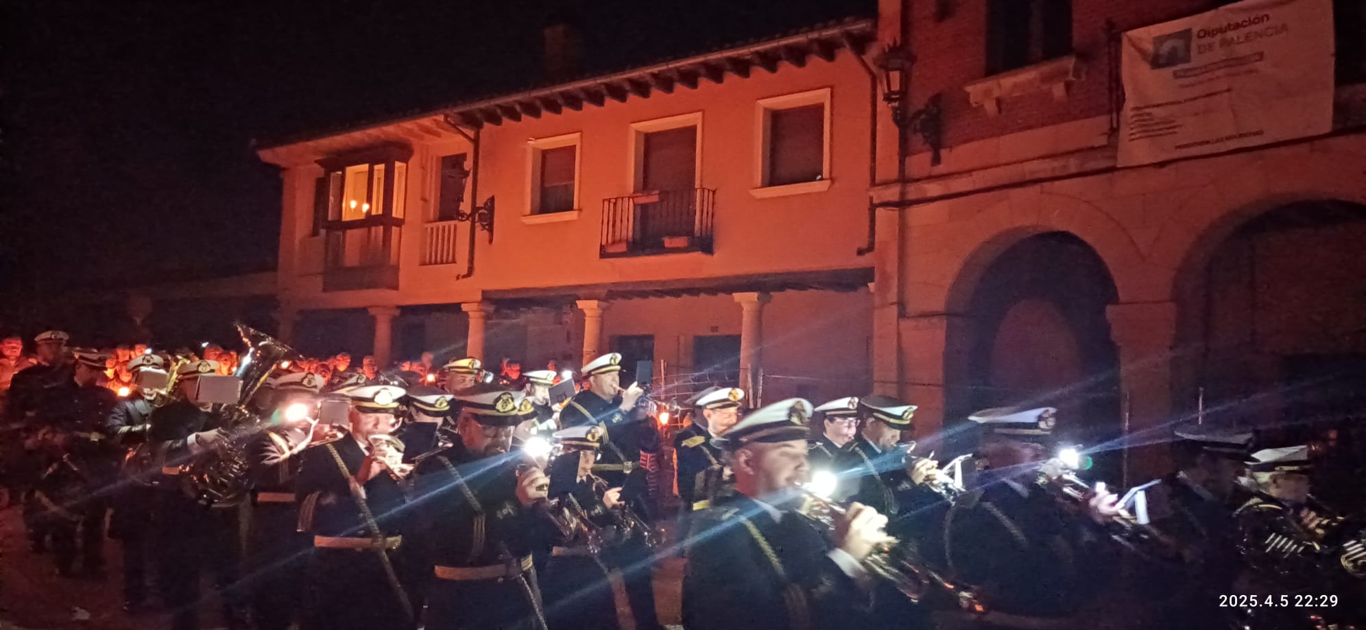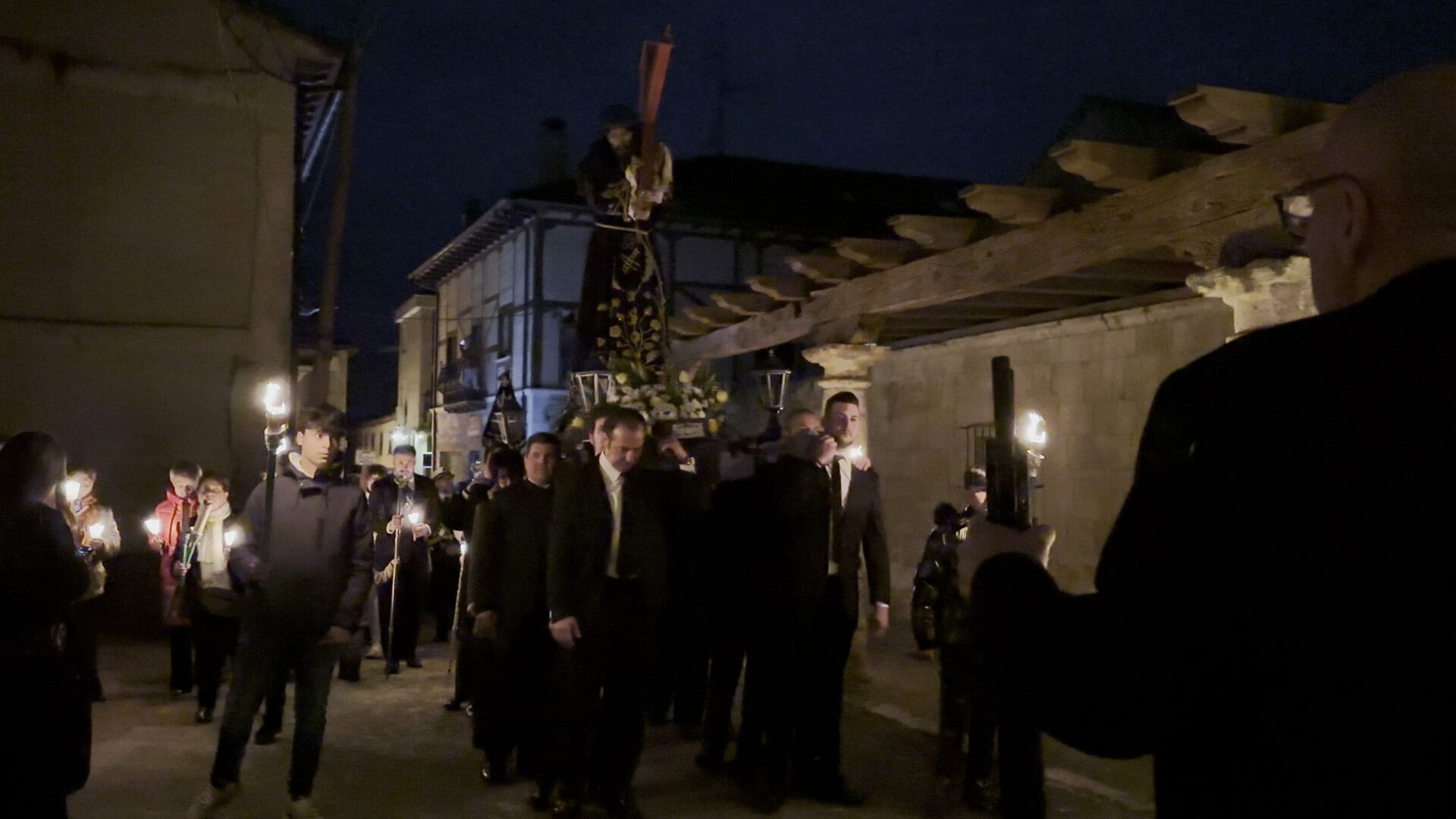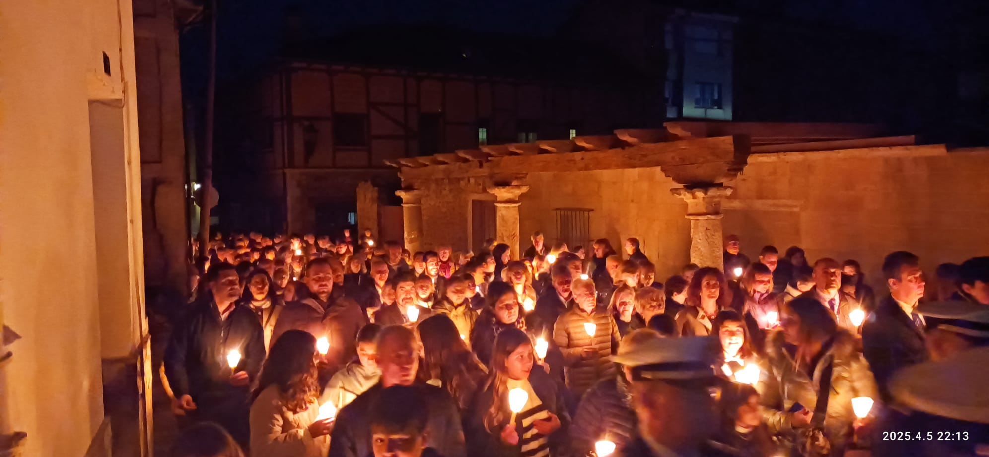 En el pórtico de la Iglesia, el Nazareno era esperado por 100 velas coloreadas por los niños de Herrera y flanqueado por porteadores de antorchas, mientras cientos de personas encendían sus velas para comenzar un recorrido por las calles de una ciudad a oscuras, en la que bares y establecimientos apagaban la luz a su paso y donde el profundo y respetuoso silencio era acompañado por la Banda de Cornetas y Tambores de la Santísima Trinidad con sus cerca de 90 componentes.