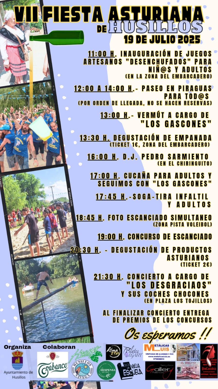 El pueblo palentino de Husillos celebra este sábado, 19 de julio, la séptima edición de la Fiesta Asturiana 2025, tradicional encuentro de vecinos y visitantes con un animado programa para todas las edades de juegos artesanos y populares, actividades acuáticas, degustaciones de productos y sidra, concurso de escanciado y actuaciones musicales en directo.