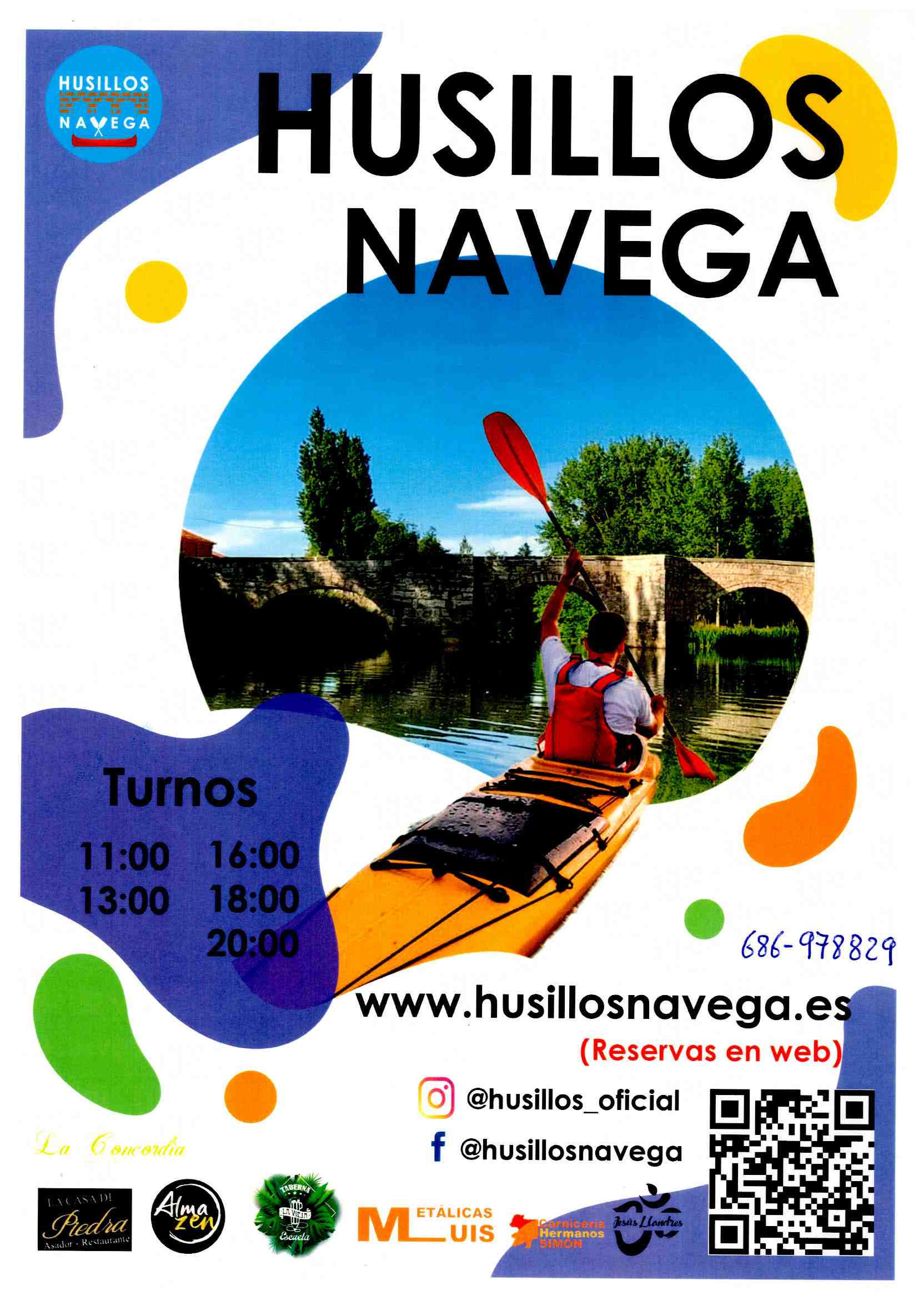 Husillos ofrece la posibilidad de disfrutar de su río gracias a la iniciativa Husillos navega, que permiten alquilar 8 kayaks dobles, 2 individuales, dos padelsurf y a mayores dos nuevas adquisiciones; un bicikayak de hasta 5 plazas y un hidropedal