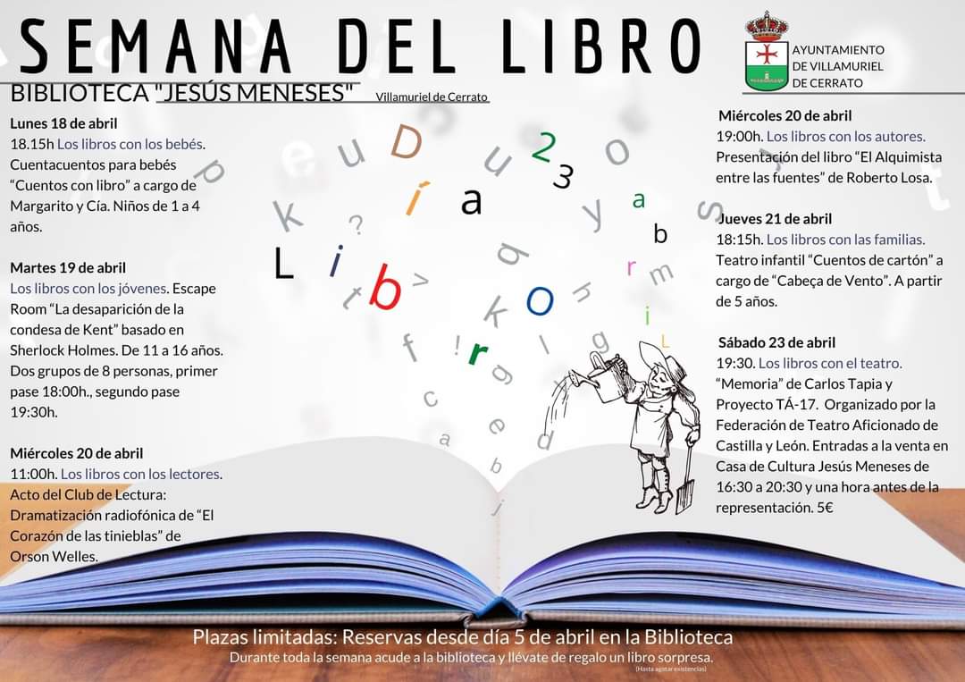 Del 18 al 23 de abril SEMANA DEL LIBRO. Durante toda la semana acude a la biblioteca y llévate de regalo un libro sorpresa en Villamuriel de Cerrato.