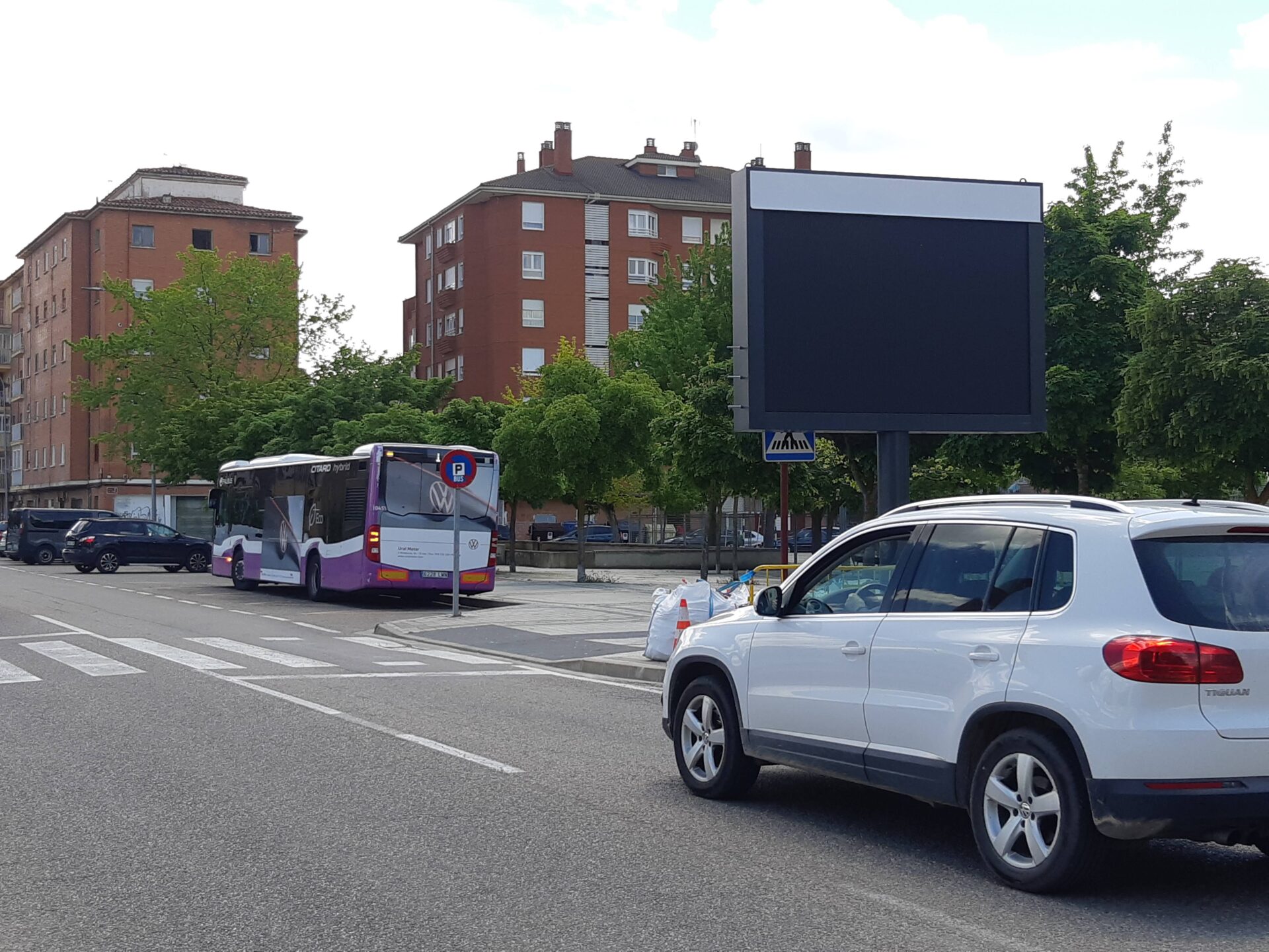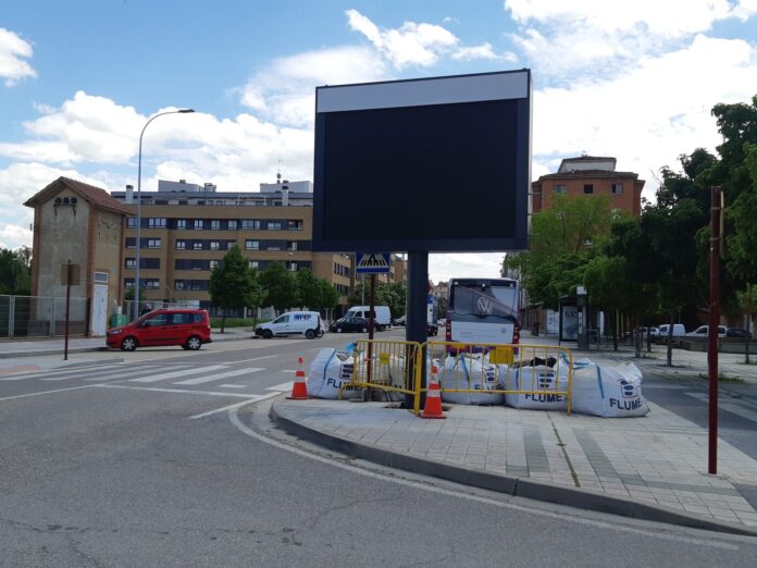 Uno de los paneles led colocados en las entradas de Palencia. / Óscar Herrero