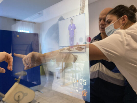 ¿Cómo? Fácil, se sitúan frente al espejo, con el apoyo de la fisioterapeuta del centro y van realizando sencillos ejercicios. El espejo corrige movimientos y marca pautas. Gracias a estas pruebas, los espejos interactivos irán mejorando, incluso, podrán incorporar un plan de ejercicios específicos para personas en silla de ruedas, con el que puedan trabajar el equilibrio y la respiración, además de algún tipo de técnicas para controlar la ansiedad y el nerviosismo.