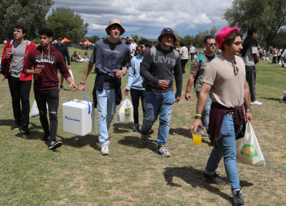 María González, palentina del barrio El Cristo, junto a sus amigos opinaba sobre la fiesta que “fue mejor la de 2022 por el calor que hacía algo que en esta no se notaba.”