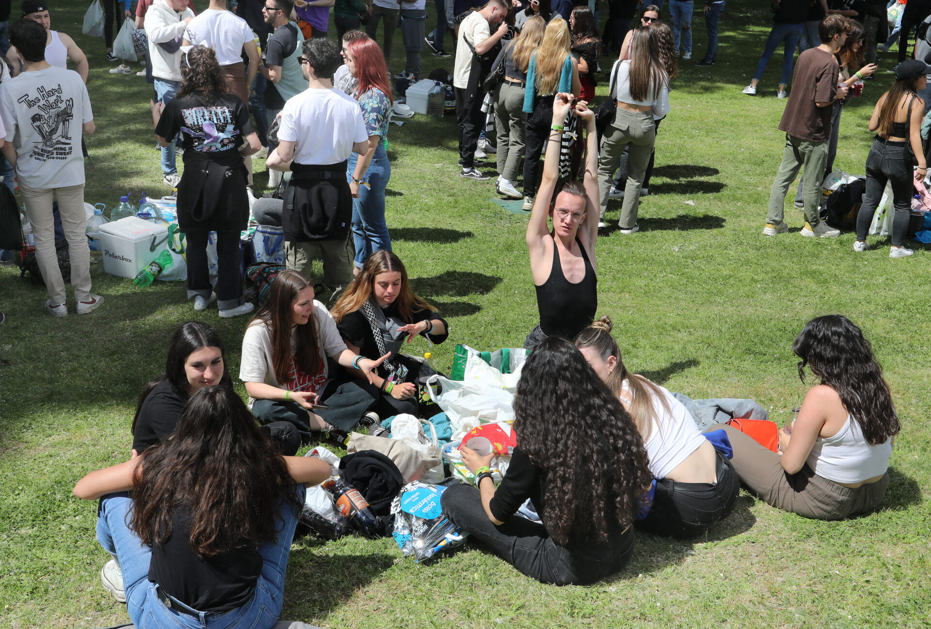El lugar en donde se disfruta es el Ribera Sur. Un parque con superficie suficiente del que apenas se ocupa la parte central y en la que se ubican escenarios, una gigantesca pradera-pista de baile, zonas para comer… Y para otra serie de servicios como los básicos con baños portátiles. Pero antes de entrar, toca someterse al escrutinio de la seguridad. La Policía Nacional fuera. La seguridad privada en la entrada y ya dentro.