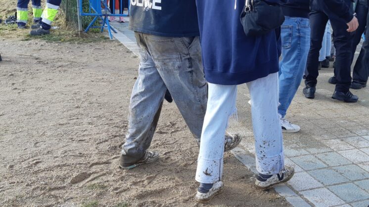 Así que llamativo era el estado de embarramiento con el que salían, ya cerca de las 20 horas, algunos jóvenes al subir la cuesta desde el Parque a la zona urbanizada del Paseo de la Julia.