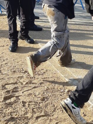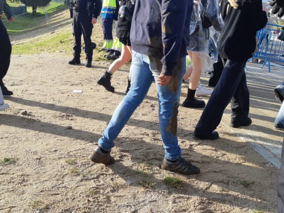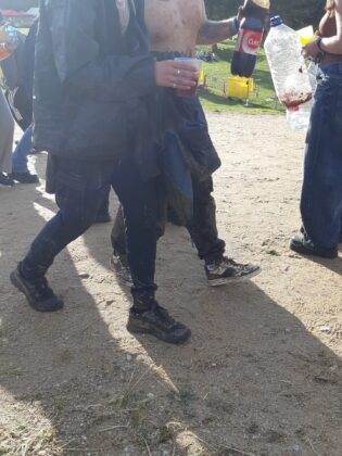 Si otros años destacaban las lámparas y lamparones que el vino, el kalimotxo o la cola de las copas dejaban en la vestimenta de los participantes, en esta ocasión llamativo era la cantidad de barro que arrastraban. Claro que los restos de la bebida aparecían, es un clásico, como las lágrimas de desamor o por la pérdida de algún objeto, el móvil, la cartera…