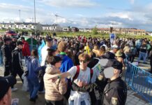 La lluvia del mediodía aplacó los ánimos de los asistentes. Un poco de refresco, un aire más frío siempre calma, evitando que la sangre hierva. Que un empujón, tras un tropiezo, se transforme en una tangana. Pero la lluvia también generó un caldo de cultivo con el barro como protagonista.