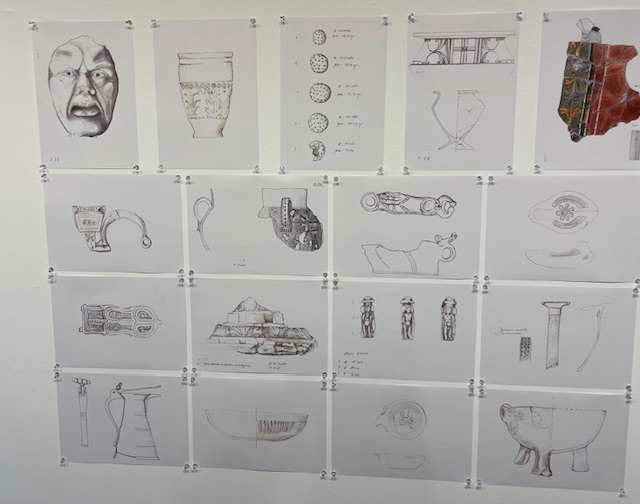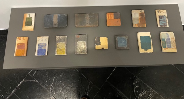 La faceta de restaurador está representada en la muestra por las fichas técnicas que elaboró y una selección de piezas del Museo de Palencia en las que intervino.
