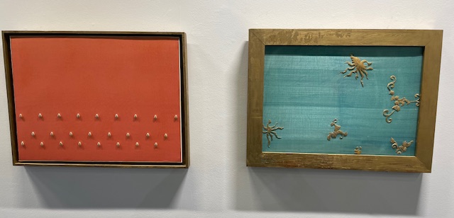 Guardo Laso fue un creador con una gran fuerza imaginativa y plástica, que se concretó también en el uso de técnicas mixtas, en la exposición presentes en las obras ‘Atardecer pirata, en el horizonte destellan’, donde utiliza pedrería sobre tela azulada para crear un espacio marino, y ‘Fantasía frente a Istambul’, donde vuelve a emplear la tela, esta vez de color rojizo y aplicaciones en la mitad inferior.
