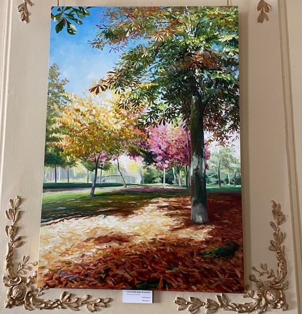 Manzano pintó El Sotillo en otoño, con sus hojas secas caídas, en una imagen en la que el cielo se abre a través de árboles enriquecidos con una rica paleta cromática: ‘Los árboles saben de colores’ se titula la obra. De la Montaña Palentina el visitante disfruta de una imagen de Fuentes Carrionas en un día soleado de invierno con la nieve en las cumbres. El color blanco se muestra potente tanto en el cielo como en la tierra sombreada. La cara sur del Curavacas se presenta más primaveral con el verde que contrasta con unas montañas entre blancas y grises. Finalmente, el Espigüete ofrece un aspecto más serranil con los caballos pastando delante de un pequeño arroyo.
