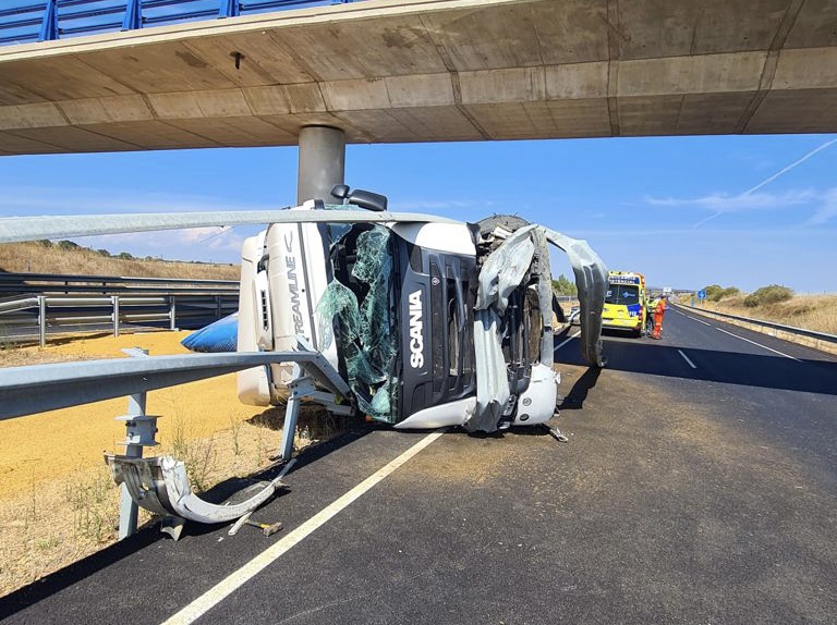 El siniestro ha tenido lugar a las 13:20 horas, a la altura del Km. 70 de la autovía A-67, sentido creciente, término municipal de Santa Cruz de Boedo y partido judicial de Carrión de los Condes. Un camión articulado ha sufrido la salida de la vía por el margen izquierdo, con vuelco en la mediana, con el resultado de un herido leve y daños materiales en el propio vehículo siniestrado.